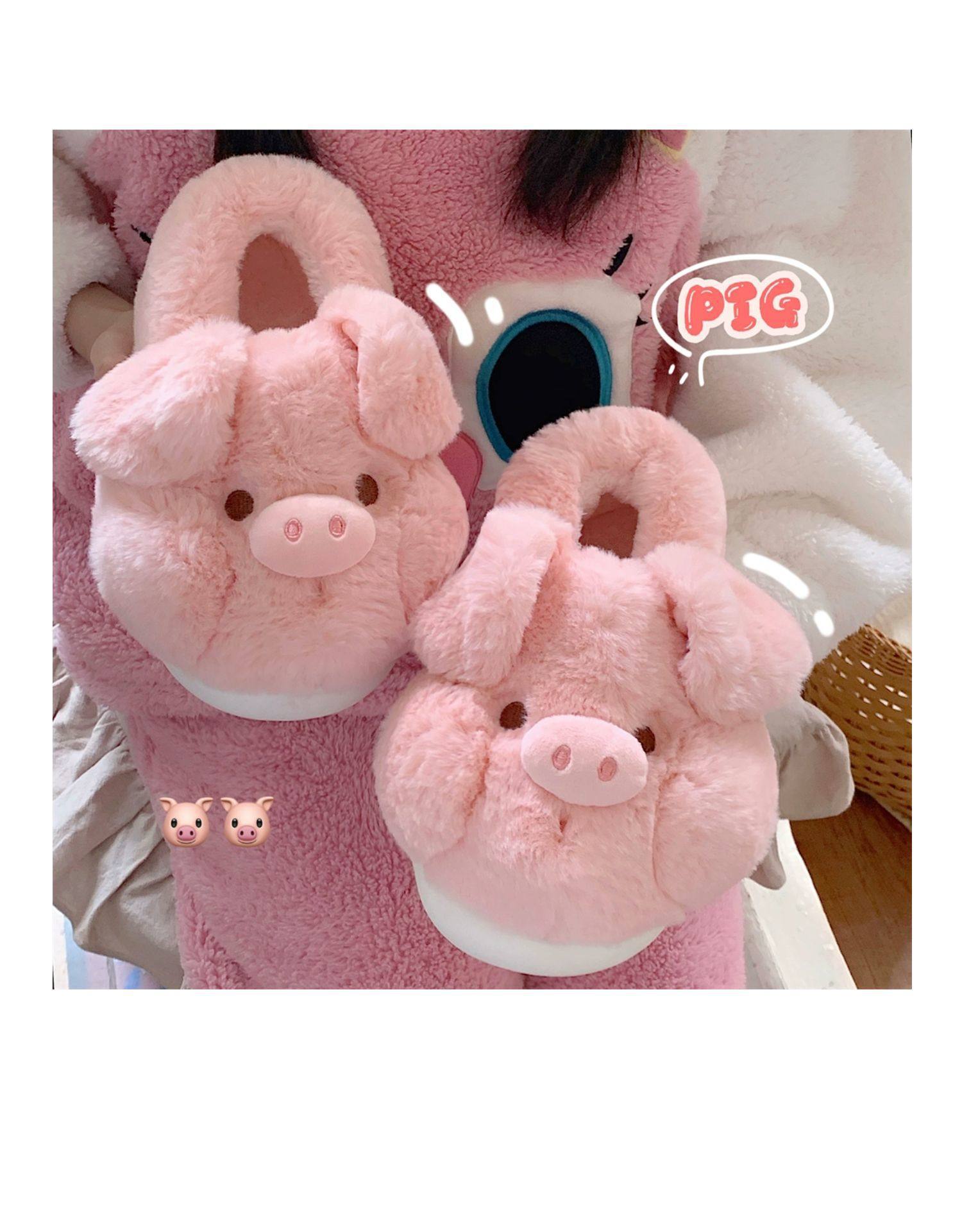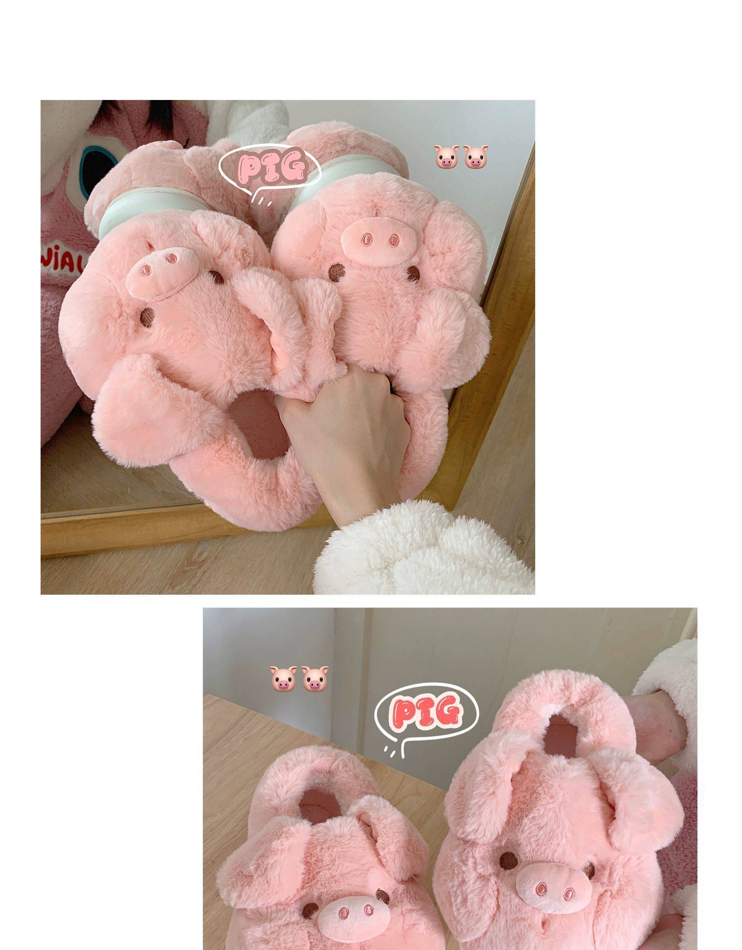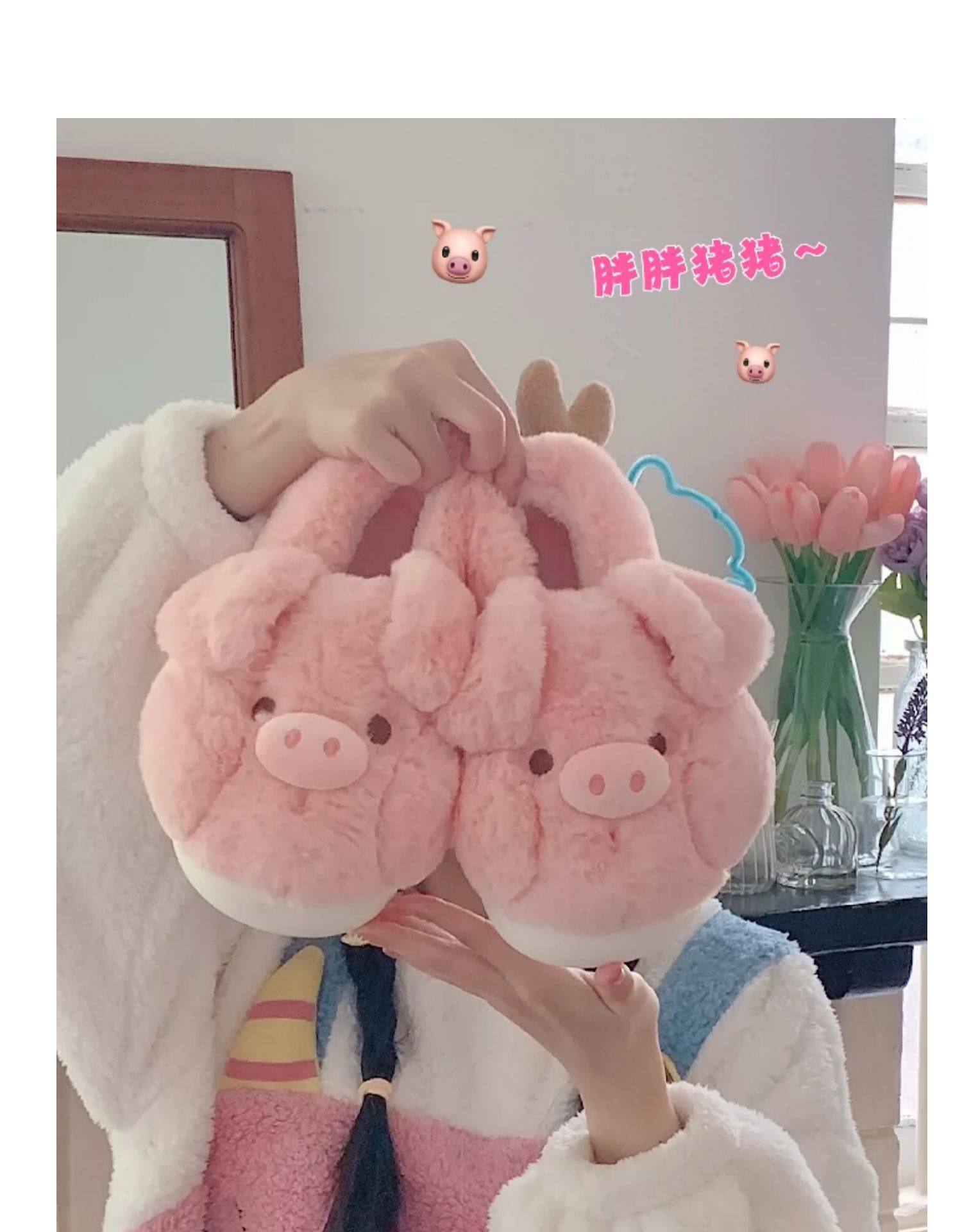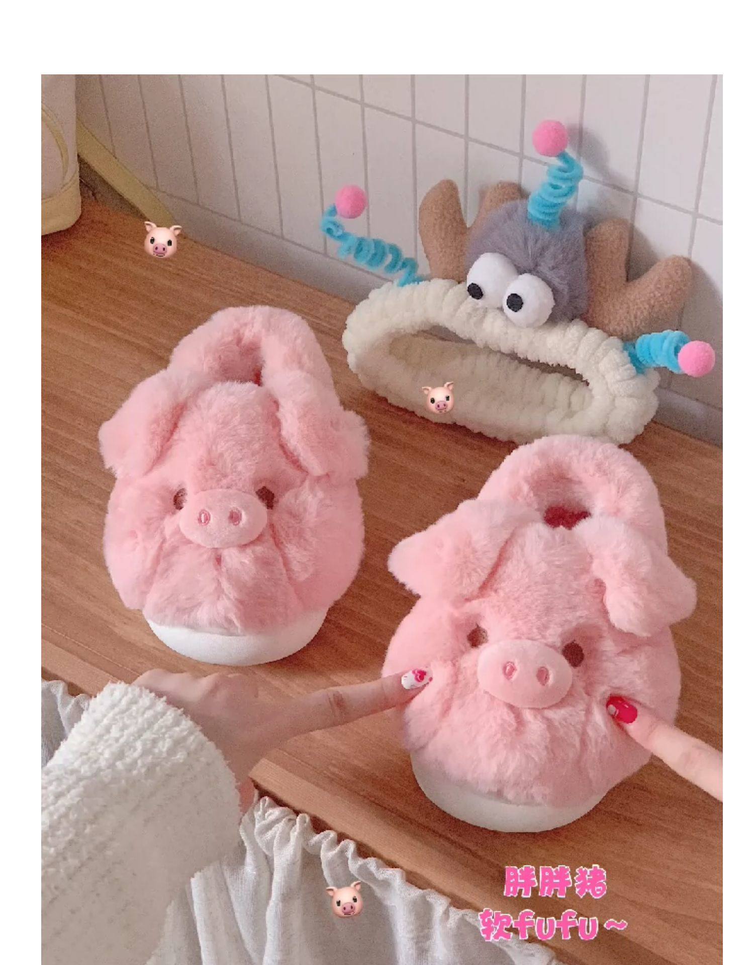 fashionable and comfortable soft bottom autumn and winter girl's heart pig soft sole shoes thermal home wear ankle wrap cotton slippers 中文版