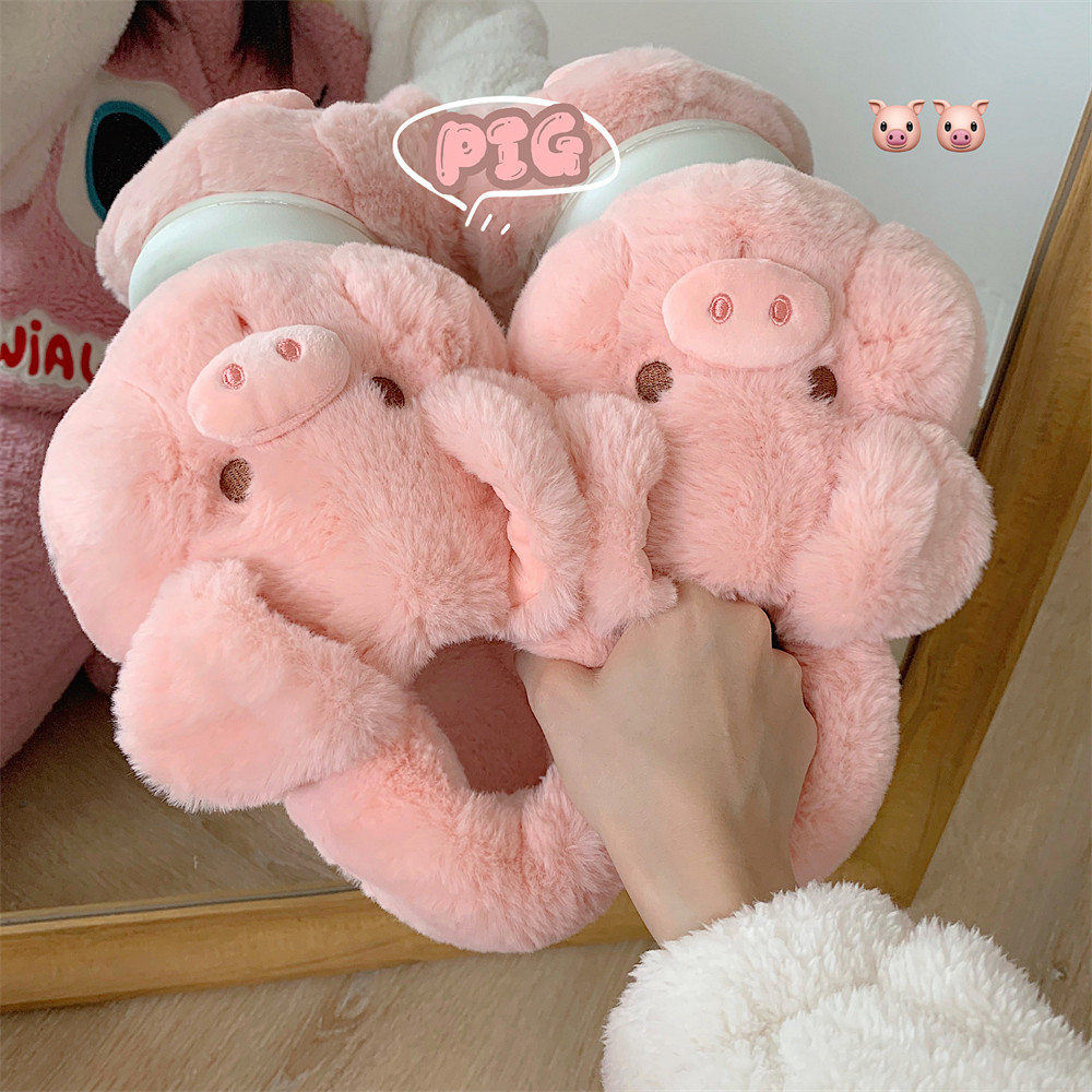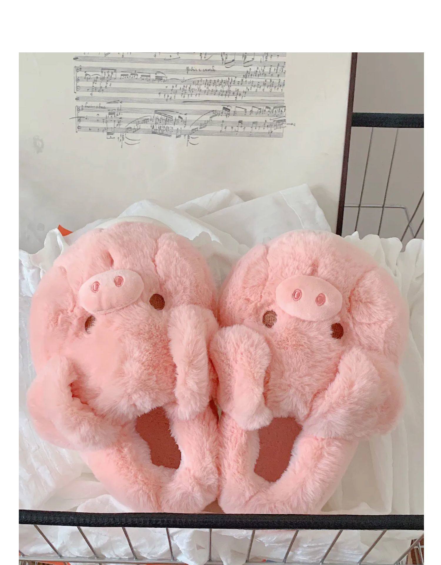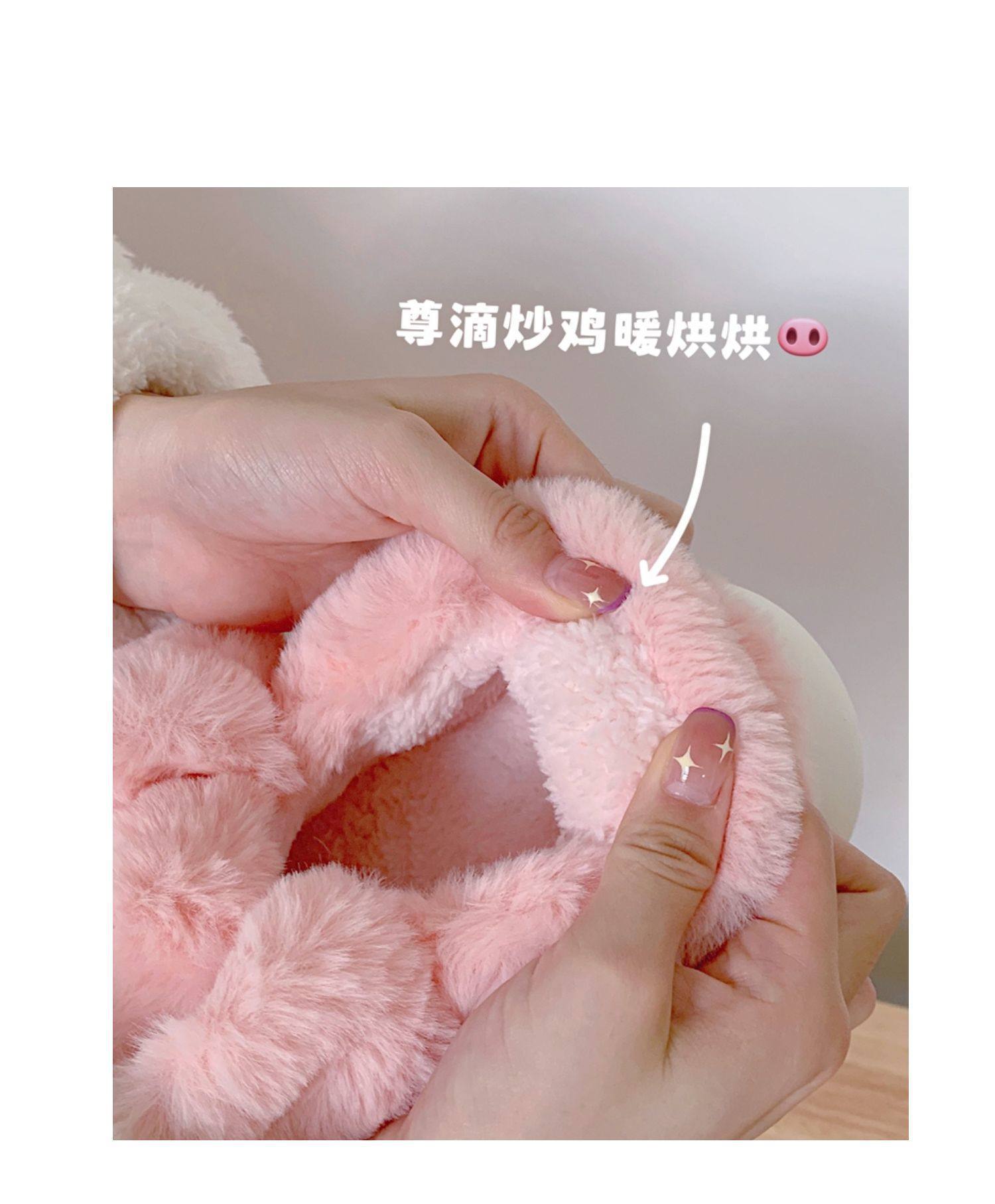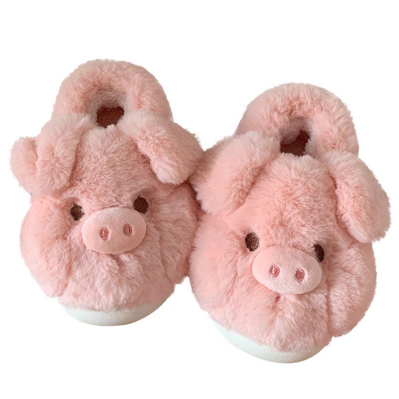 fashionable and comfortable soft bottom autumn and winter girl's heart pig soft sole shoes thermal home wear ankle wrap cotton slippers 中文版