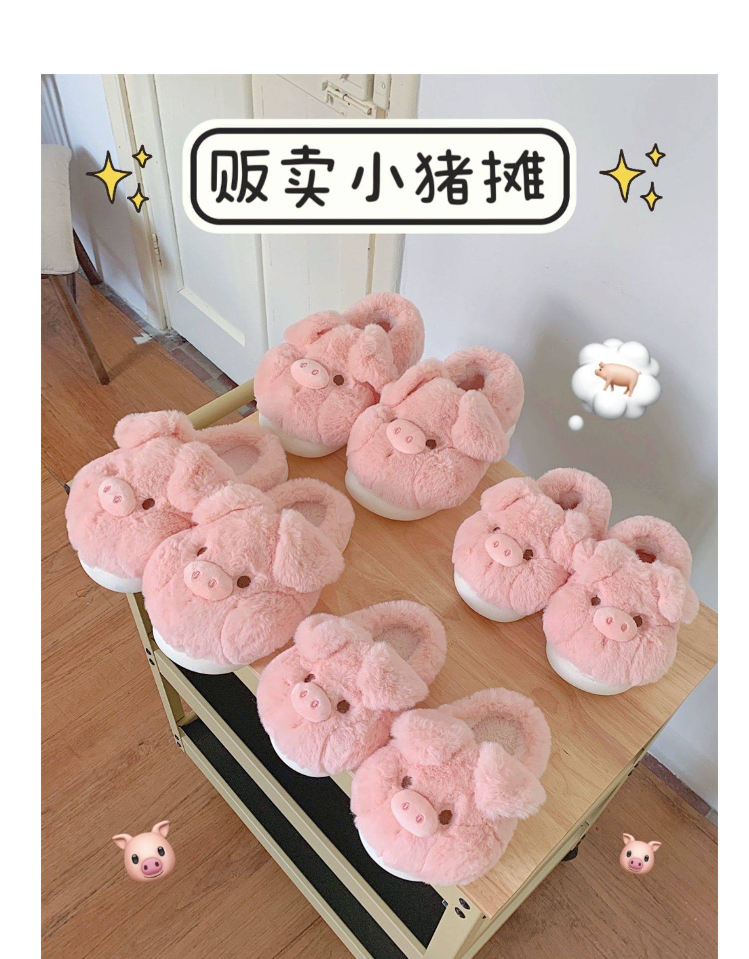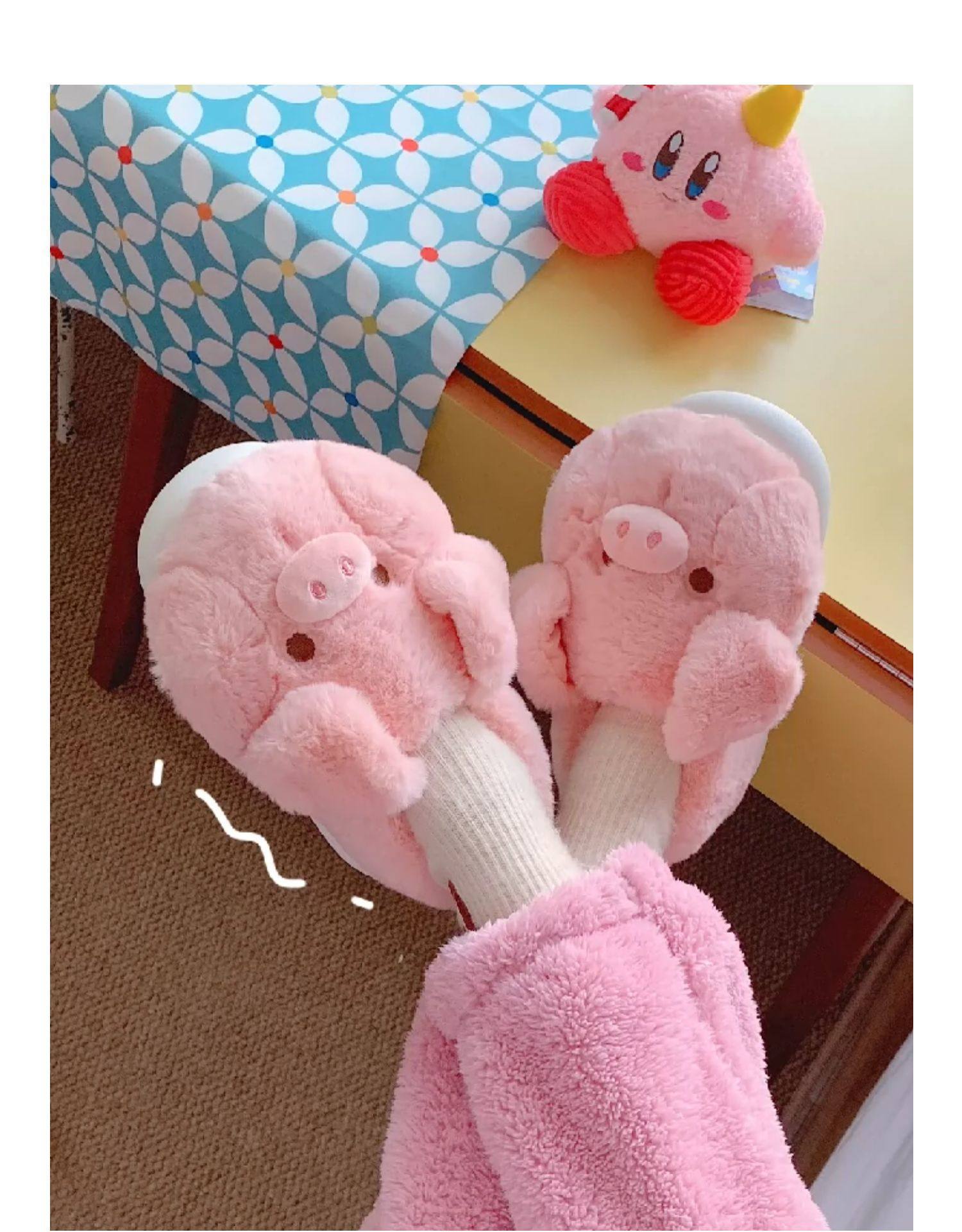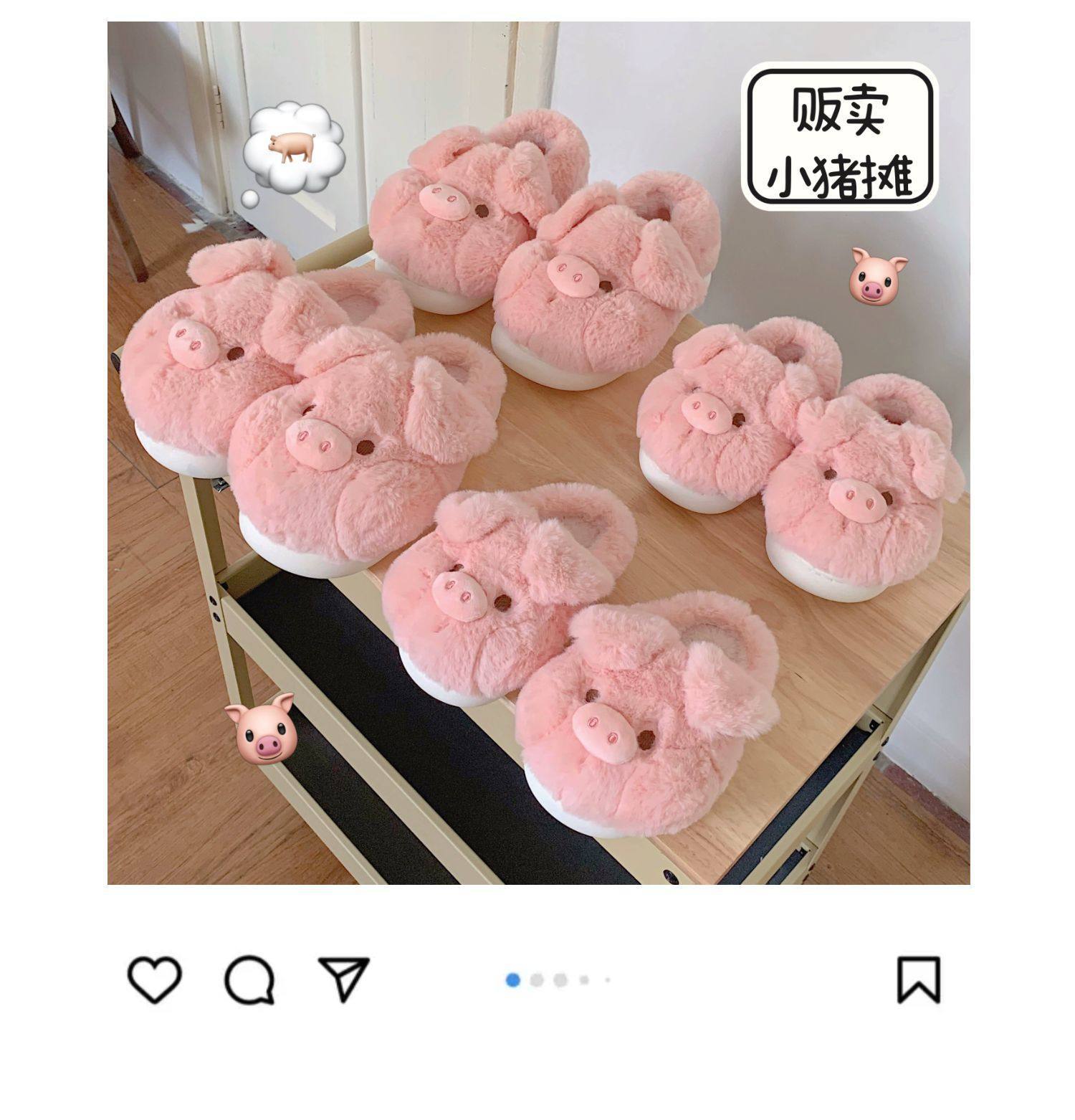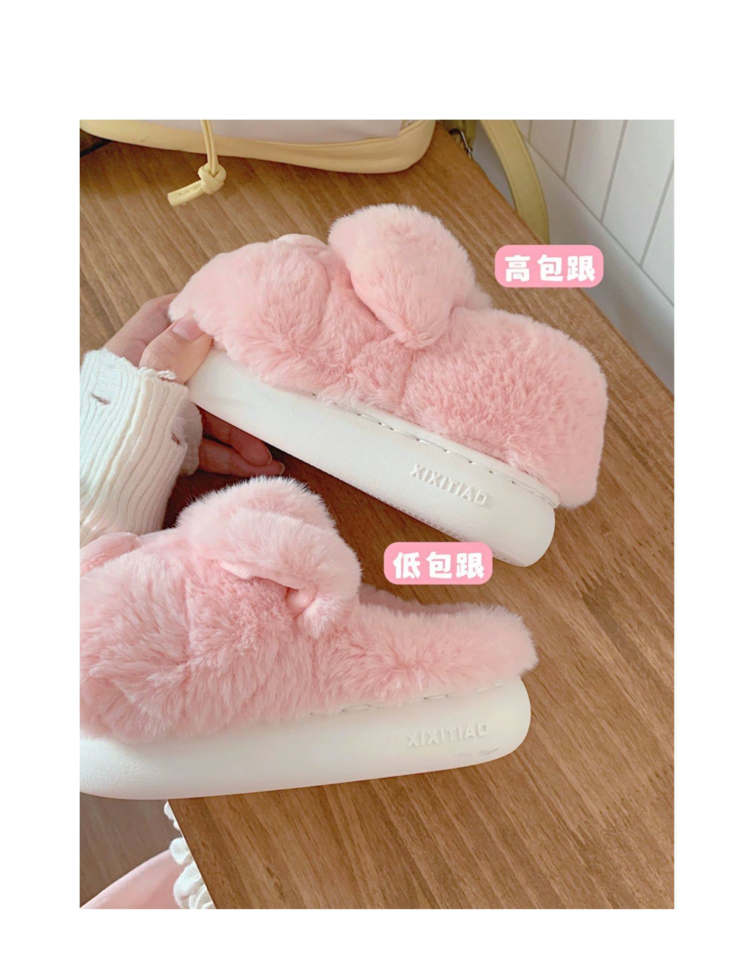 fashionable and comfortable soft bottom autumn and winter girl's heart pig soft sole shoes thermal home wear ankle wrap cotton slippers 中文版