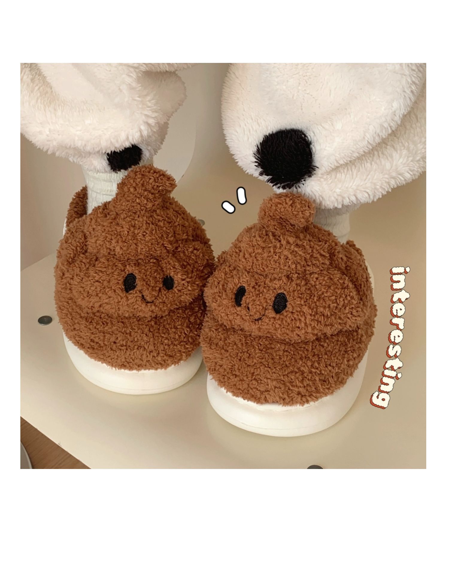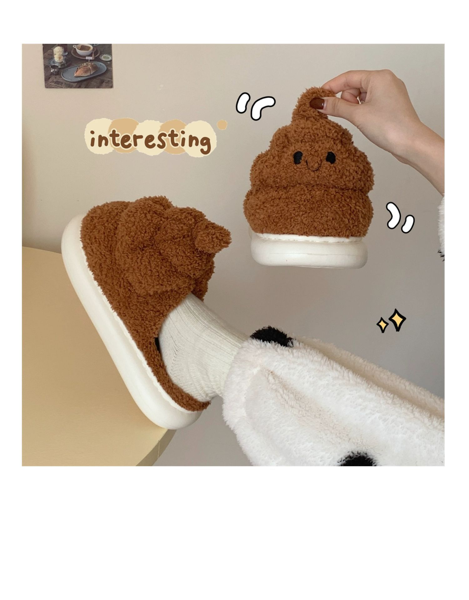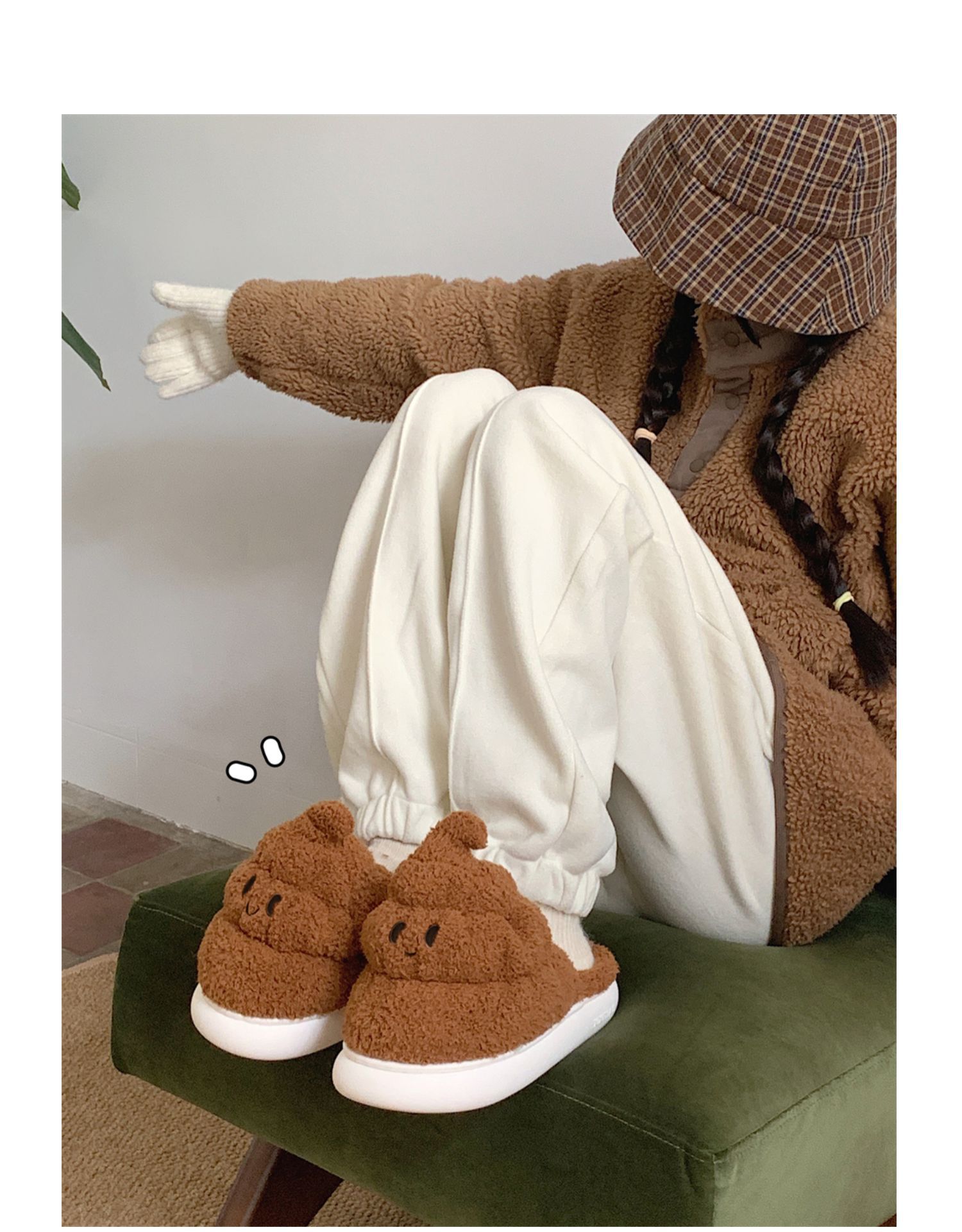 autumn and winter funny quirky stool cotton slippers women's interior home creative plush slippers 中文版