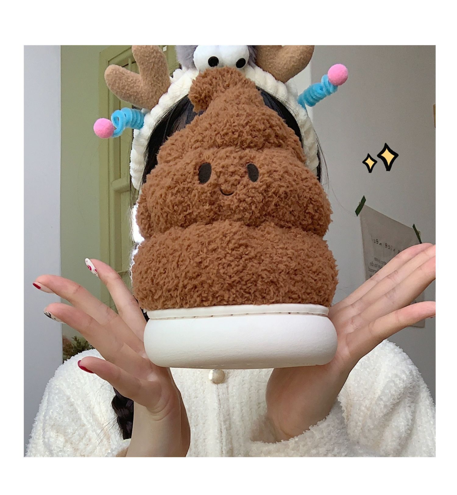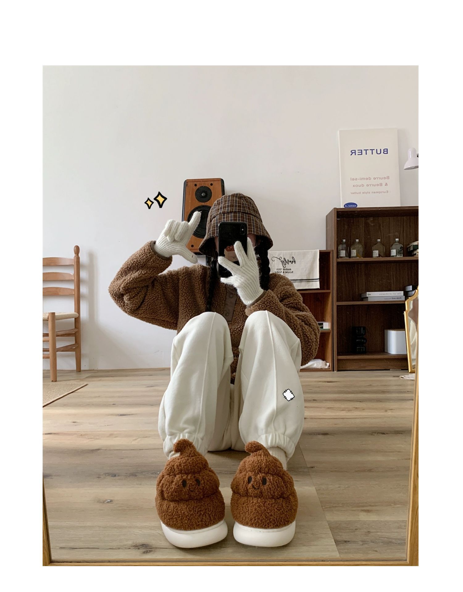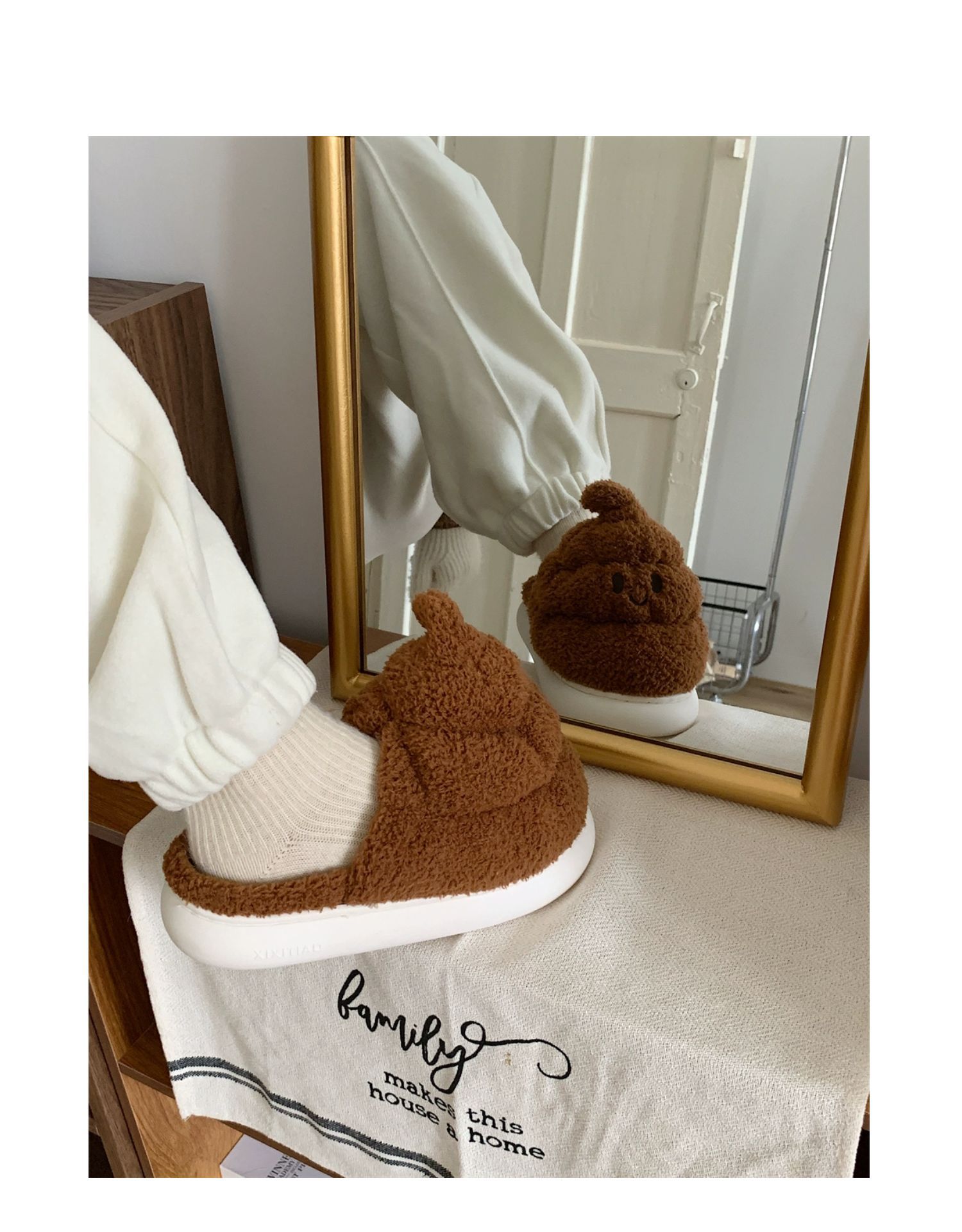 autumn and winter funny quirky stool cotton slippers women's interior home creative plush slippers 中文版
