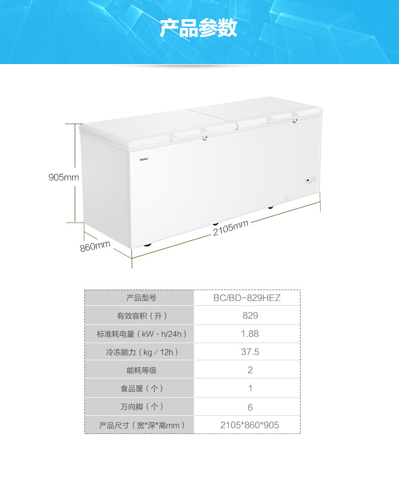 haier bc/bd-829hez 829 l freezer freeze storage fresh-keeping commercial freezer large capacity refrigerator single temperature