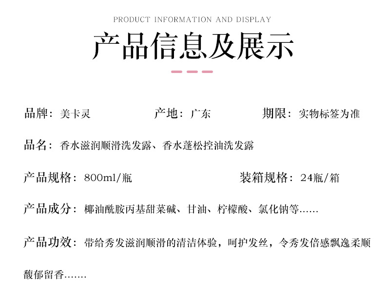 800ml elegant fragrance moisturizing smooth shampoo
