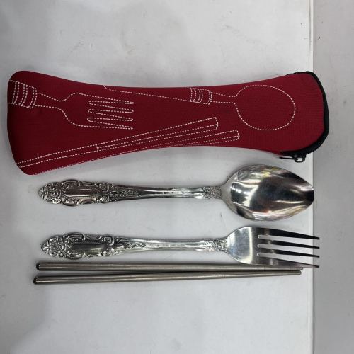 Cloth Bag Spork Three-Piece Set Including Chopsticks 3-Piece Set Spork Chopsticks Combination Tableware Set 中文版