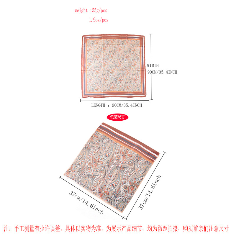 2024 new foreign trade scarf fashion retro paisley printed light luxury silk scarf 90 mirror silk yarn large kerchief batch
