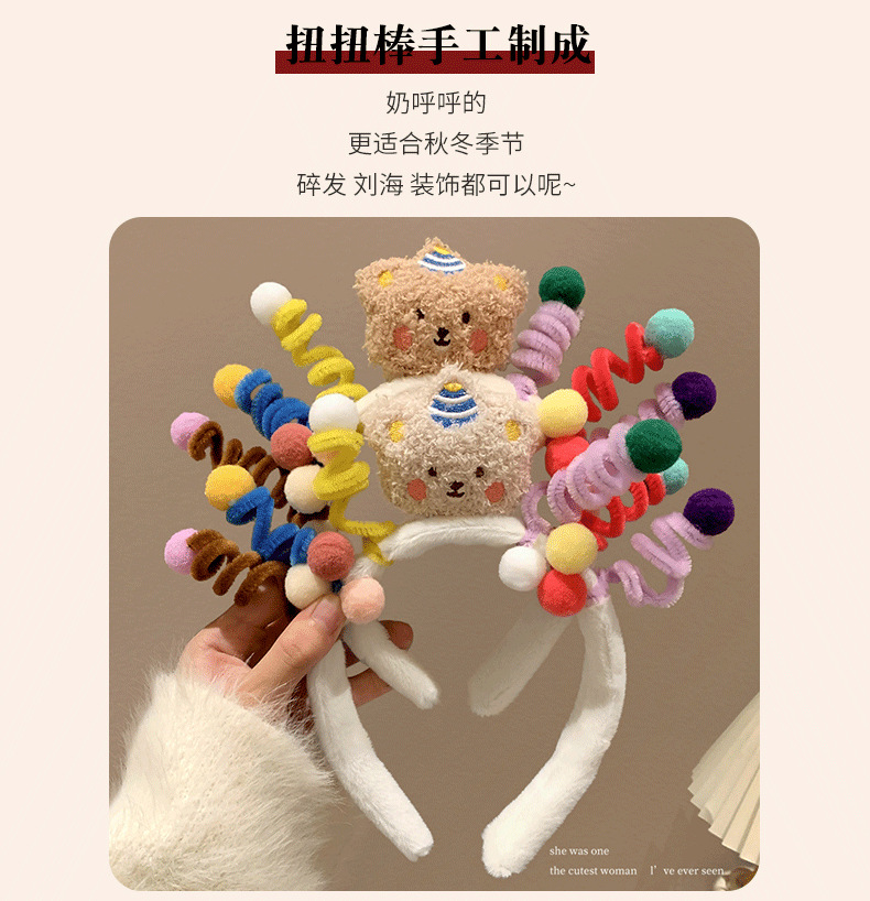 coffee color bear twisted stick headband