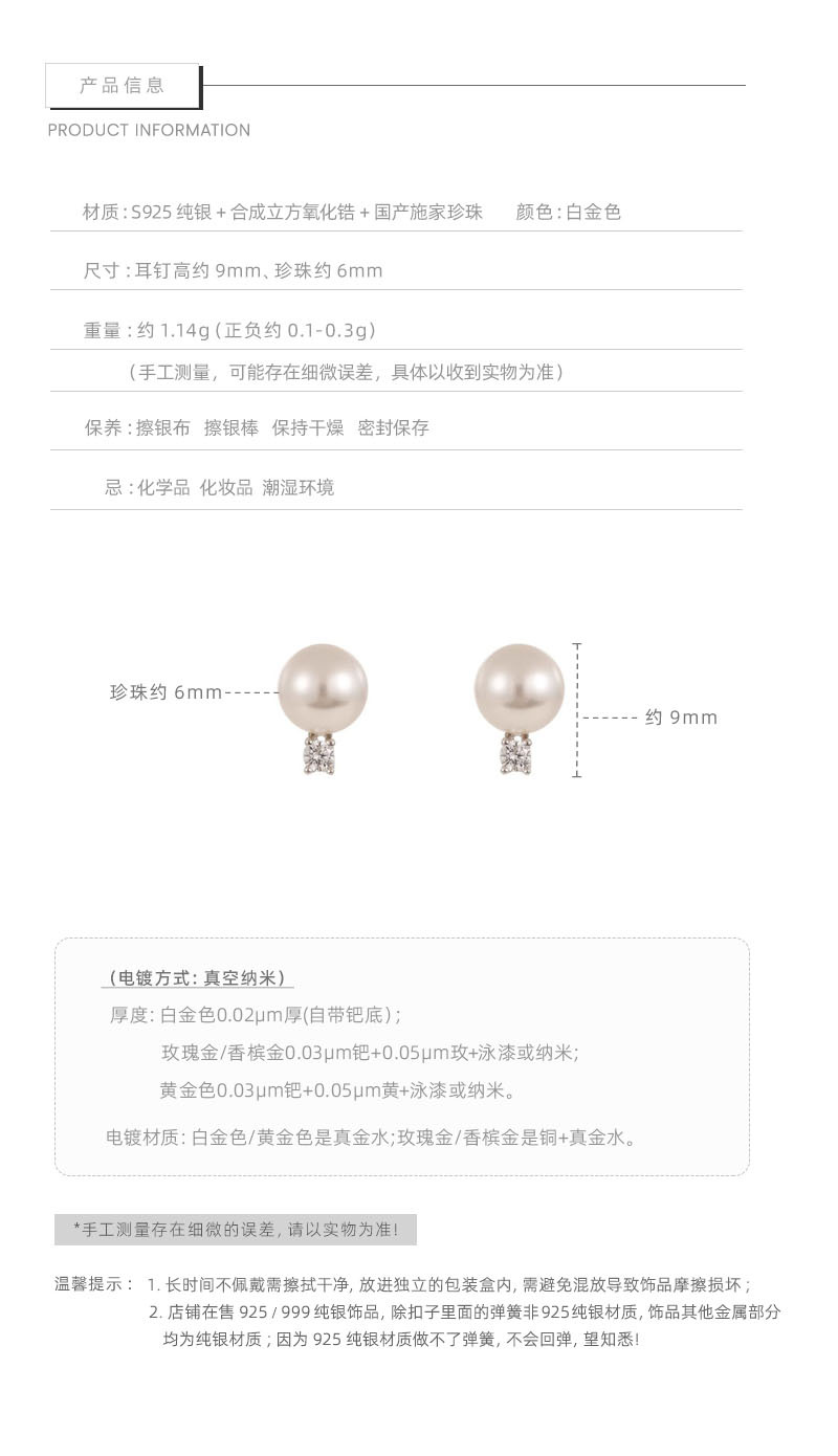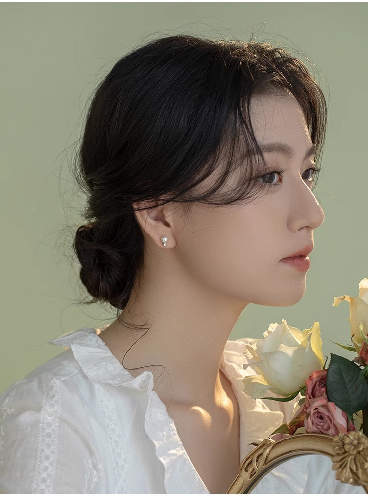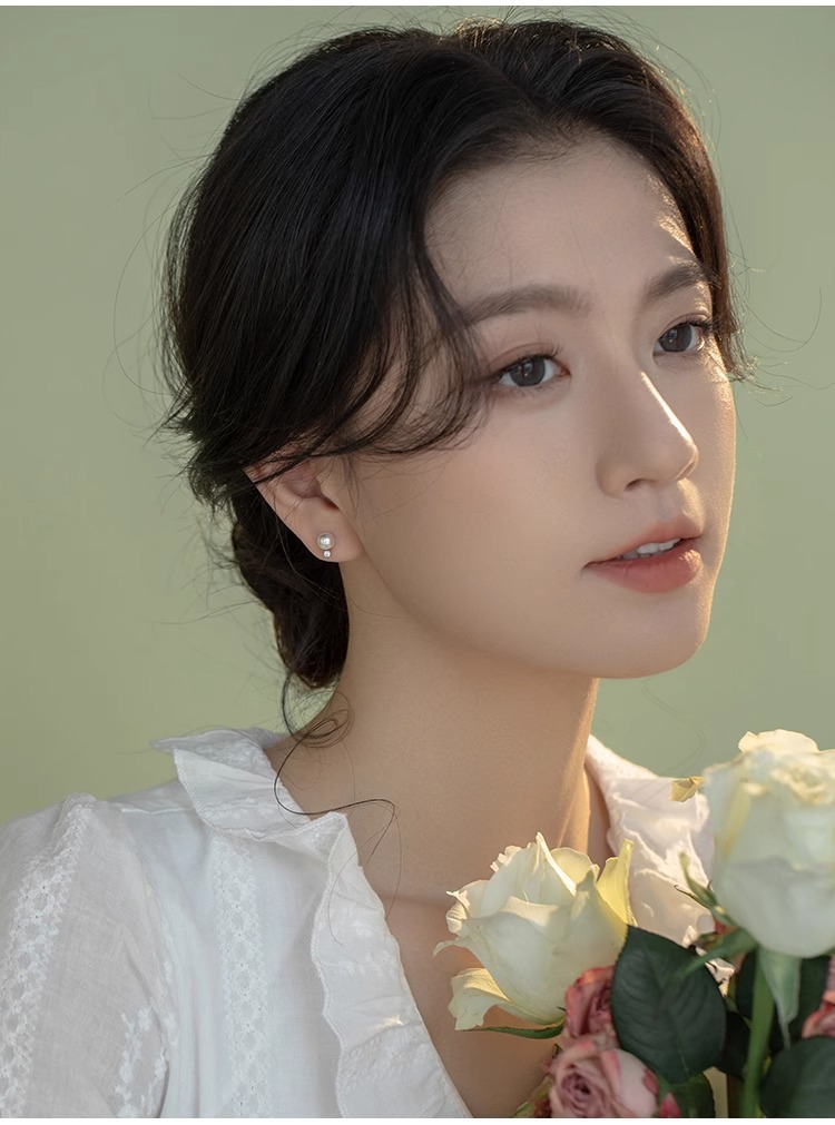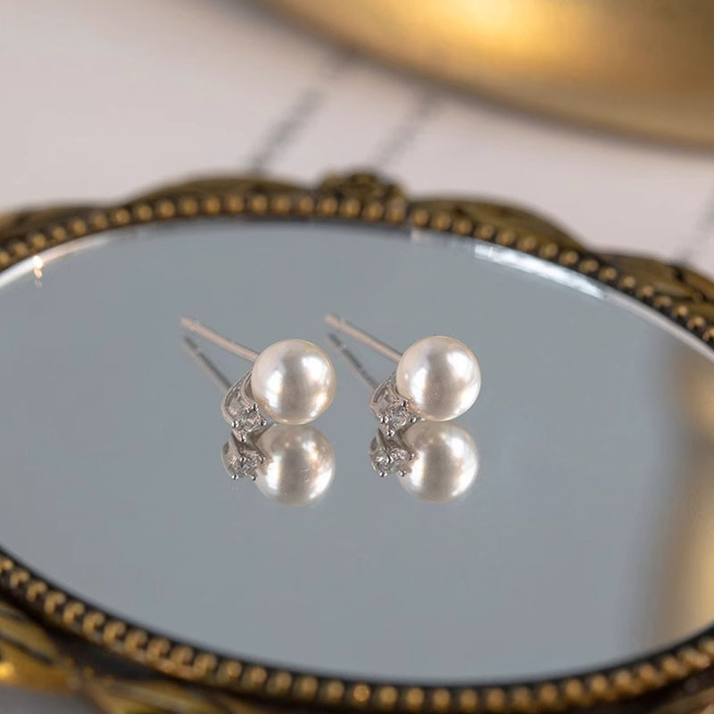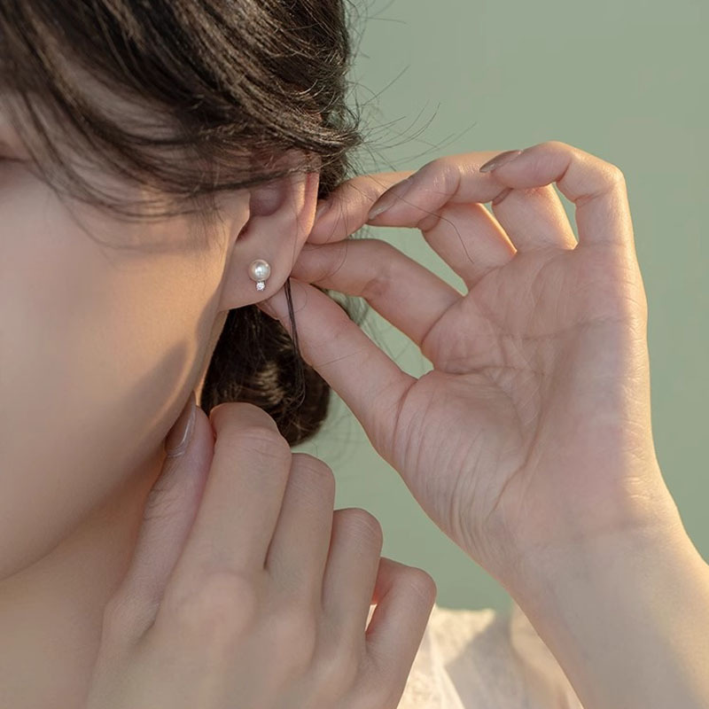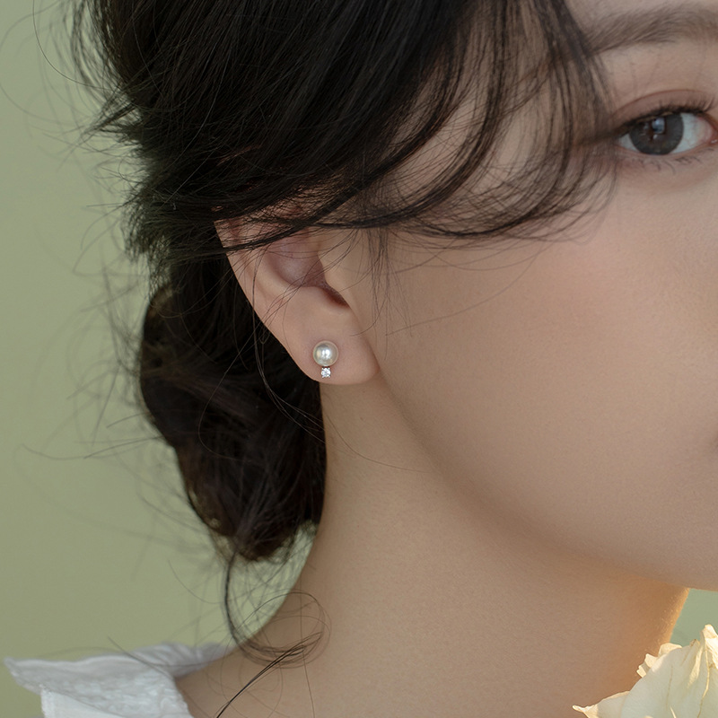 Tiqi Japanese Minimalist S925 Sterling Silver Imitation Pearl Earrings Women's Exquisite Petite Earrings Inlaid Zircon Fashion Ear Jewelry 中文版