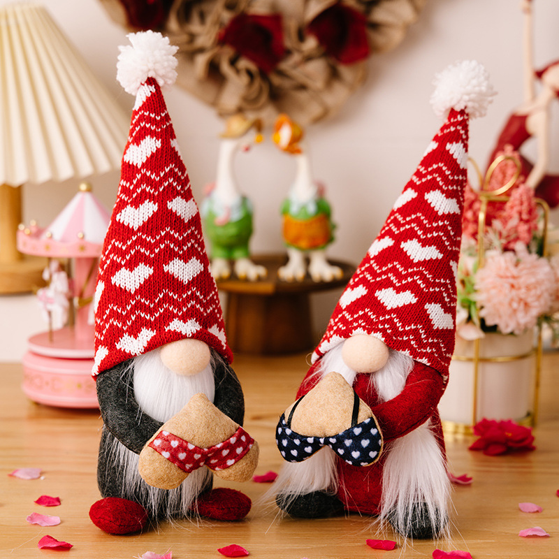 Cross-Border Valentine's Day Decoration Supplies Fur Ball Knitted Valentine's Day Doll Love Faceless Doll Qixi Gift 中文版