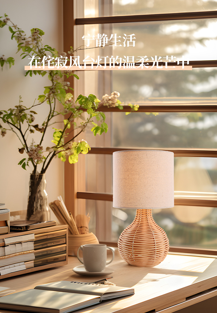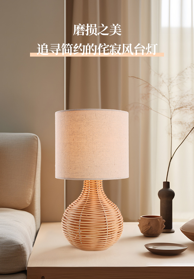 linen lampshade silent wind table lamp handmade vine woven craft lighting design desk bedroom exhibition hall decorative table lamp 中文版