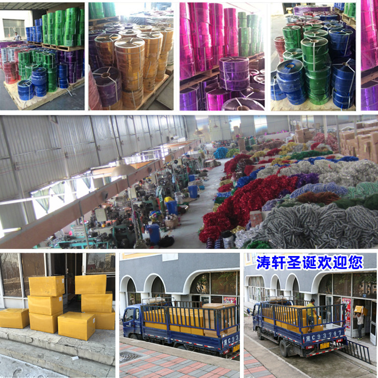 Taoxuan Christmas Craft Business: Mainly produces colored ribbons, ribbon, hair ribbon, garlands, rain curtain, Christmas ornaments and various Christmas decorations. The variety is abundant, the specifications are complete, the price is reasonable, the delivery is timely, and the quality is stable. We can custom-make production according to the needs of customers to provide drawings or samples.
