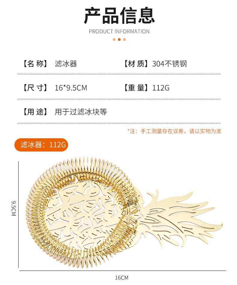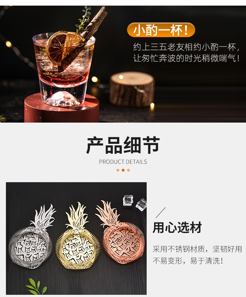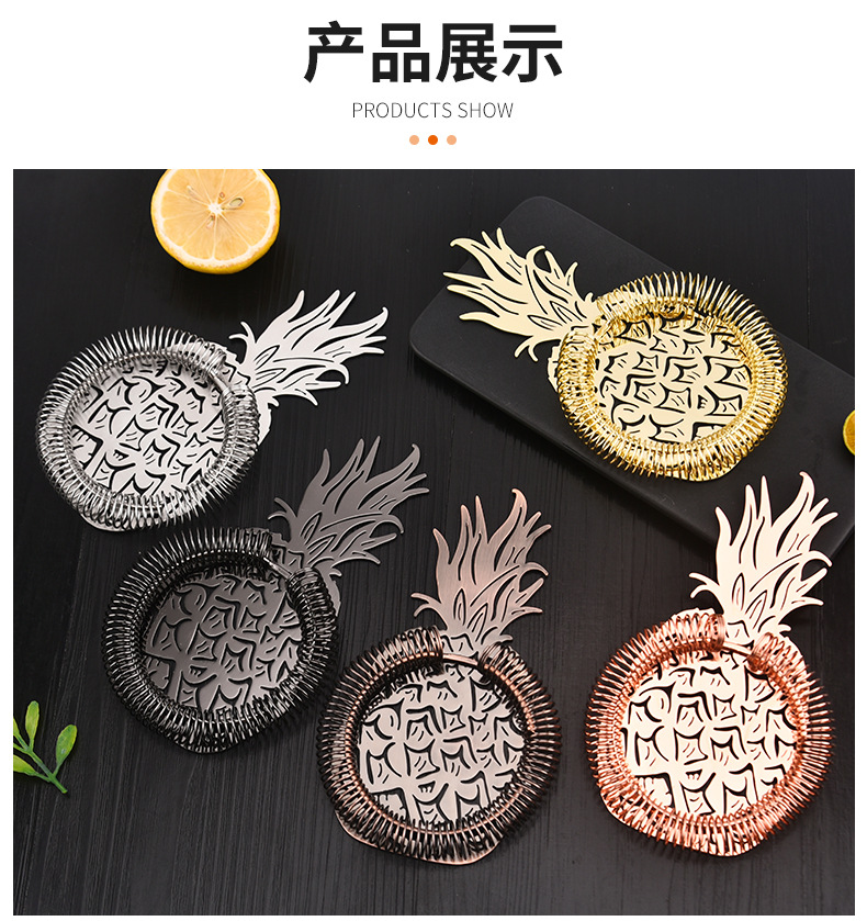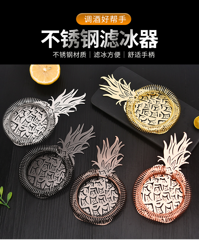 Stainless Steel Cocktail Pineapple Ice Filter Bar Tools Filter Partition Ice Strainer 中文版