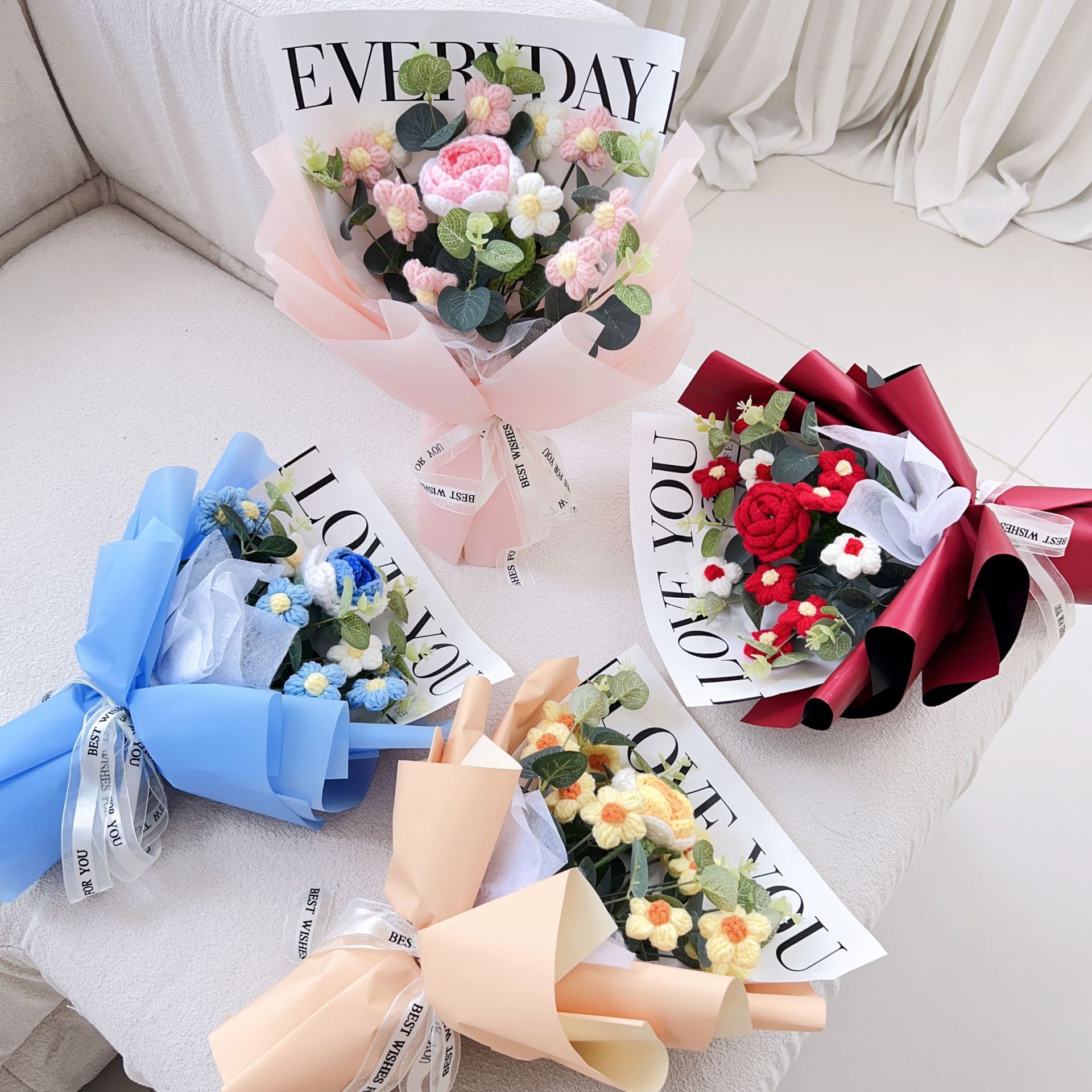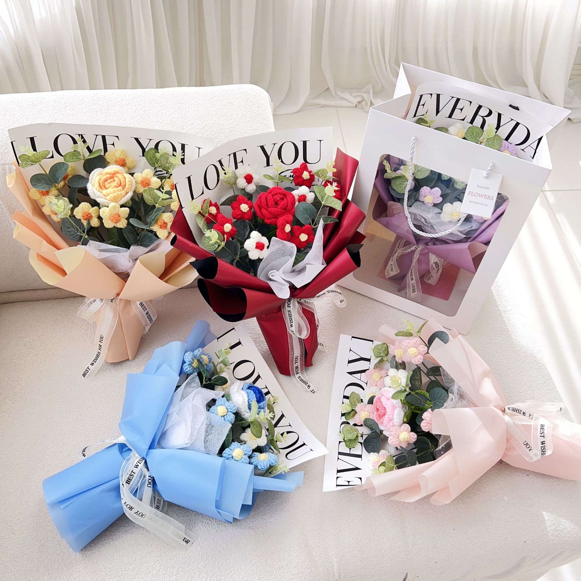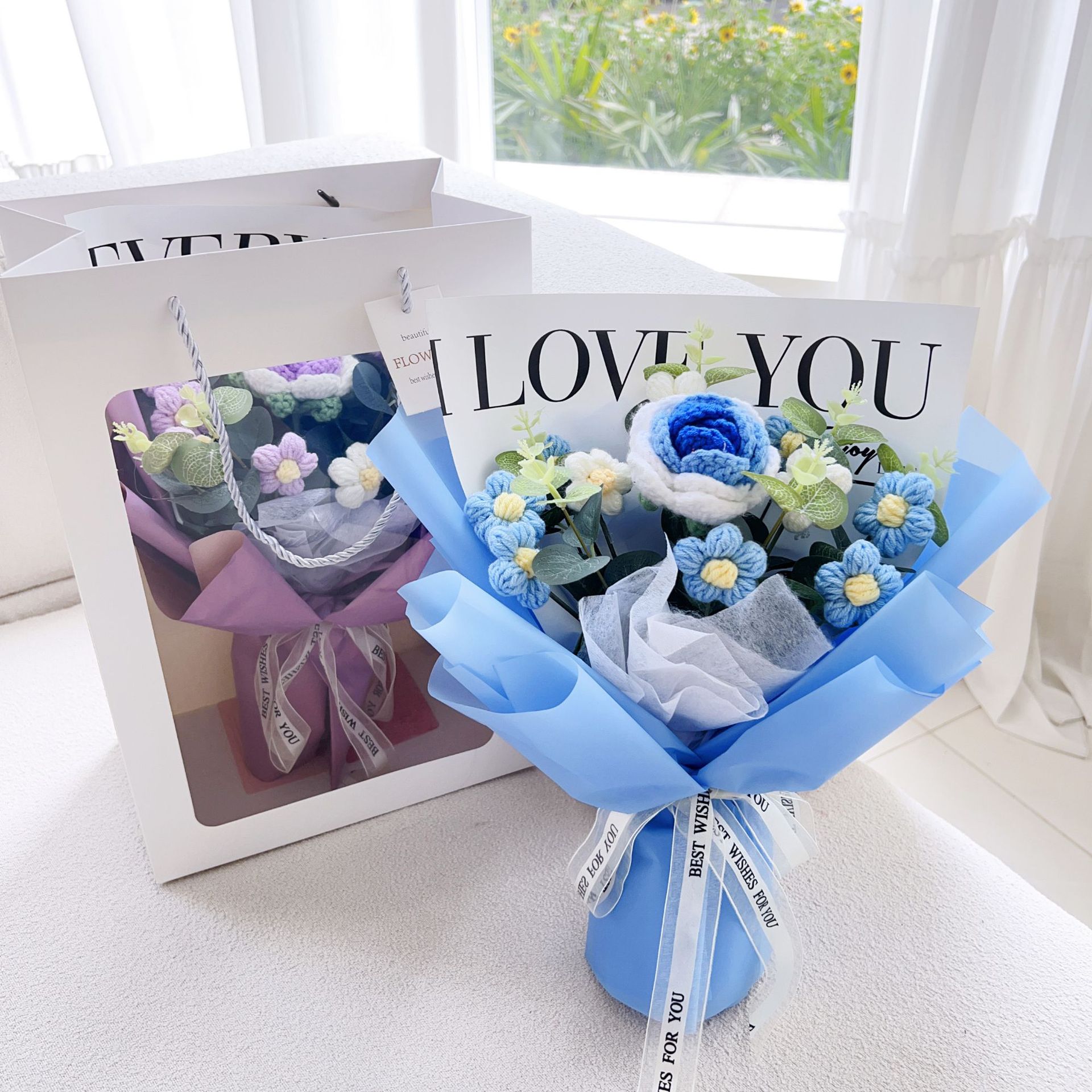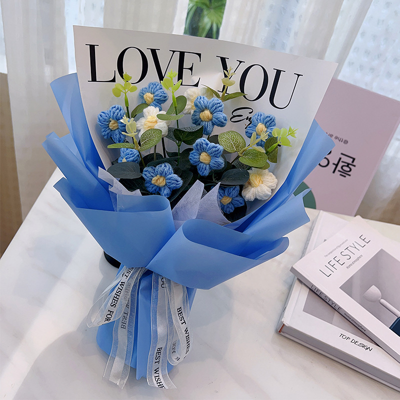 11 puff flowers + roses holding blue