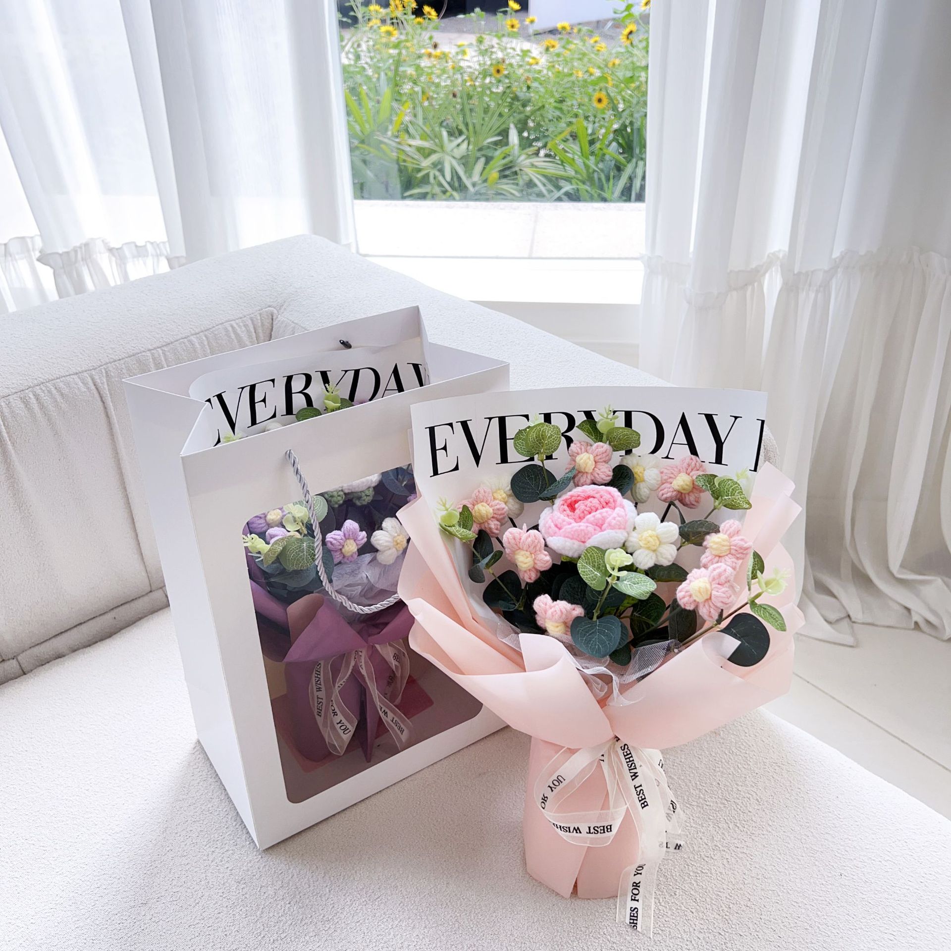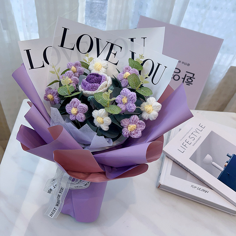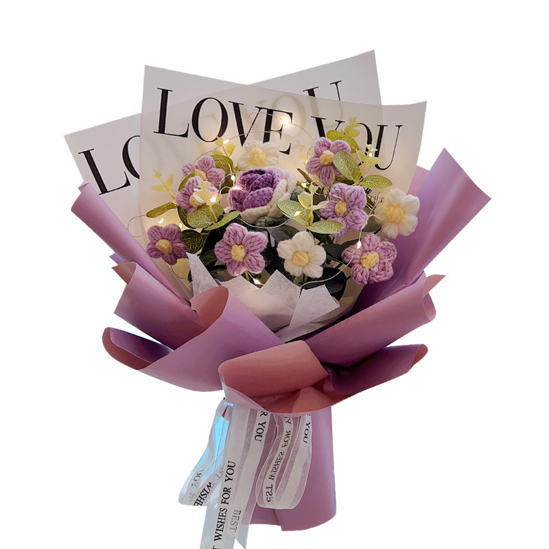 11 puff flowers + rose holding purple