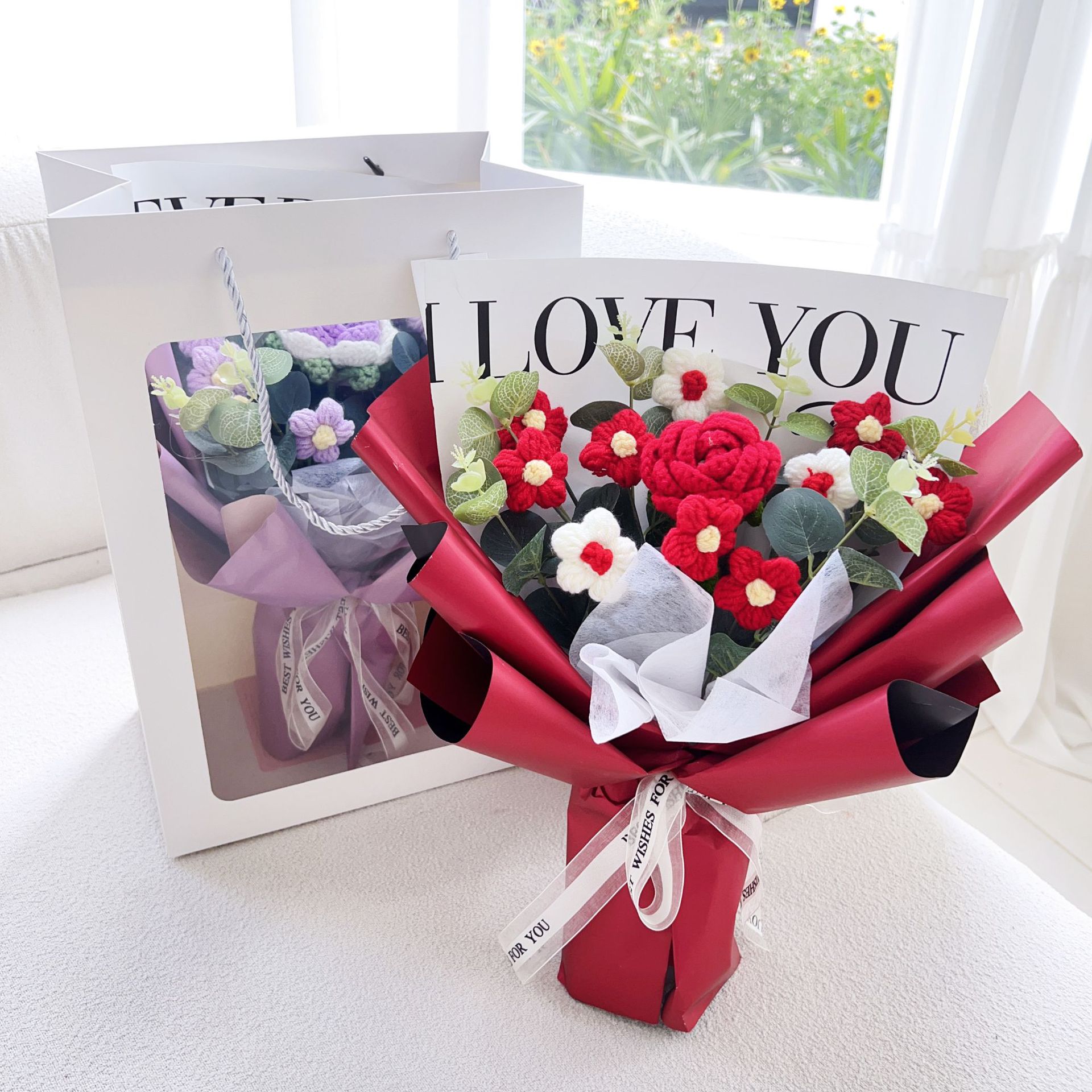 11 puff flowers + roses holding red