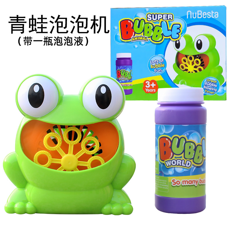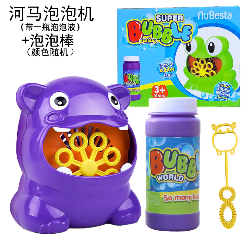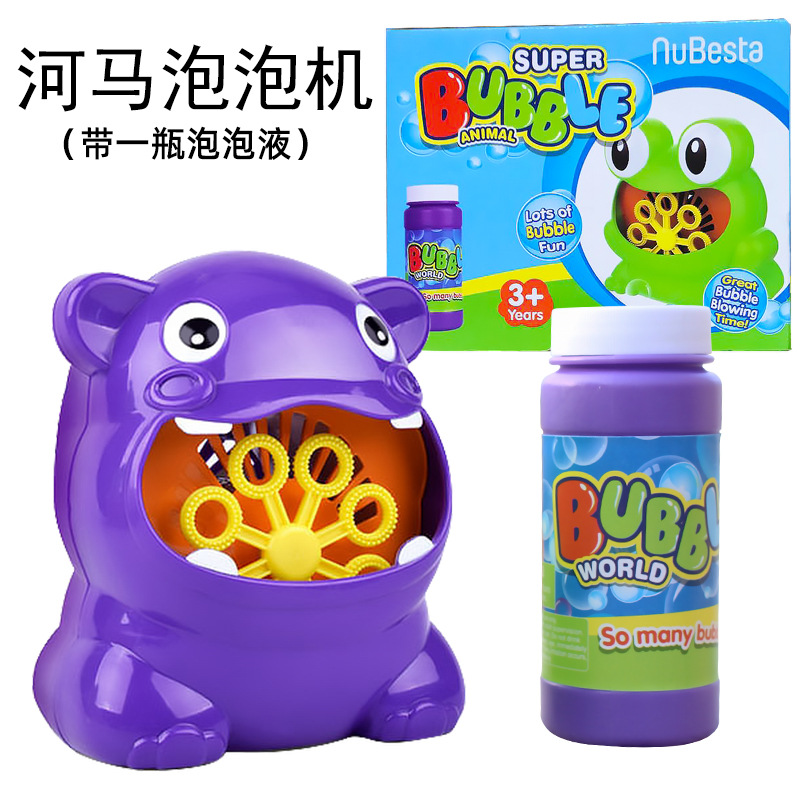 E-mail:Cross-border hot-selling frog and hippo bubble machine toy for children, fully automatic electric bubble blowing machine with bubble water wholesale