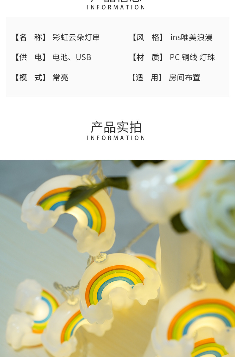 rainbow clouds led lighting chain christmas room decoration string bedroom children's room layout atmosphere colored lights 中文版