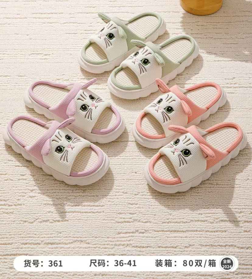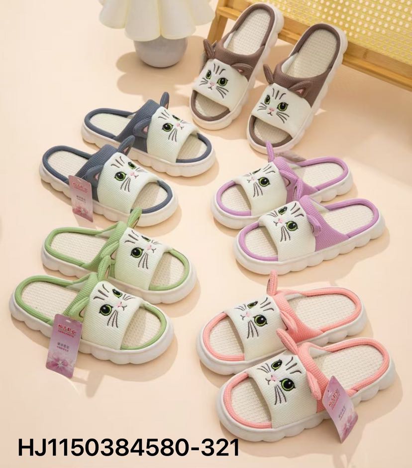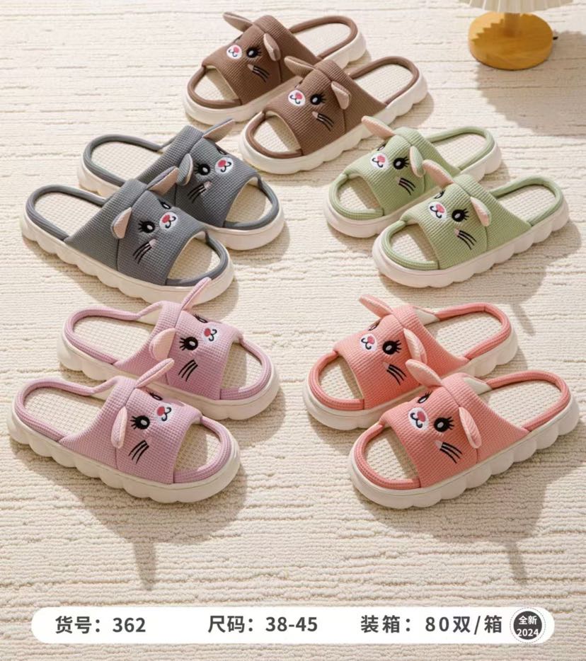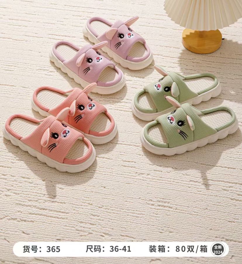 new cartoon thickening plus size white bottom open linen slippers for couples home slippers 中文版