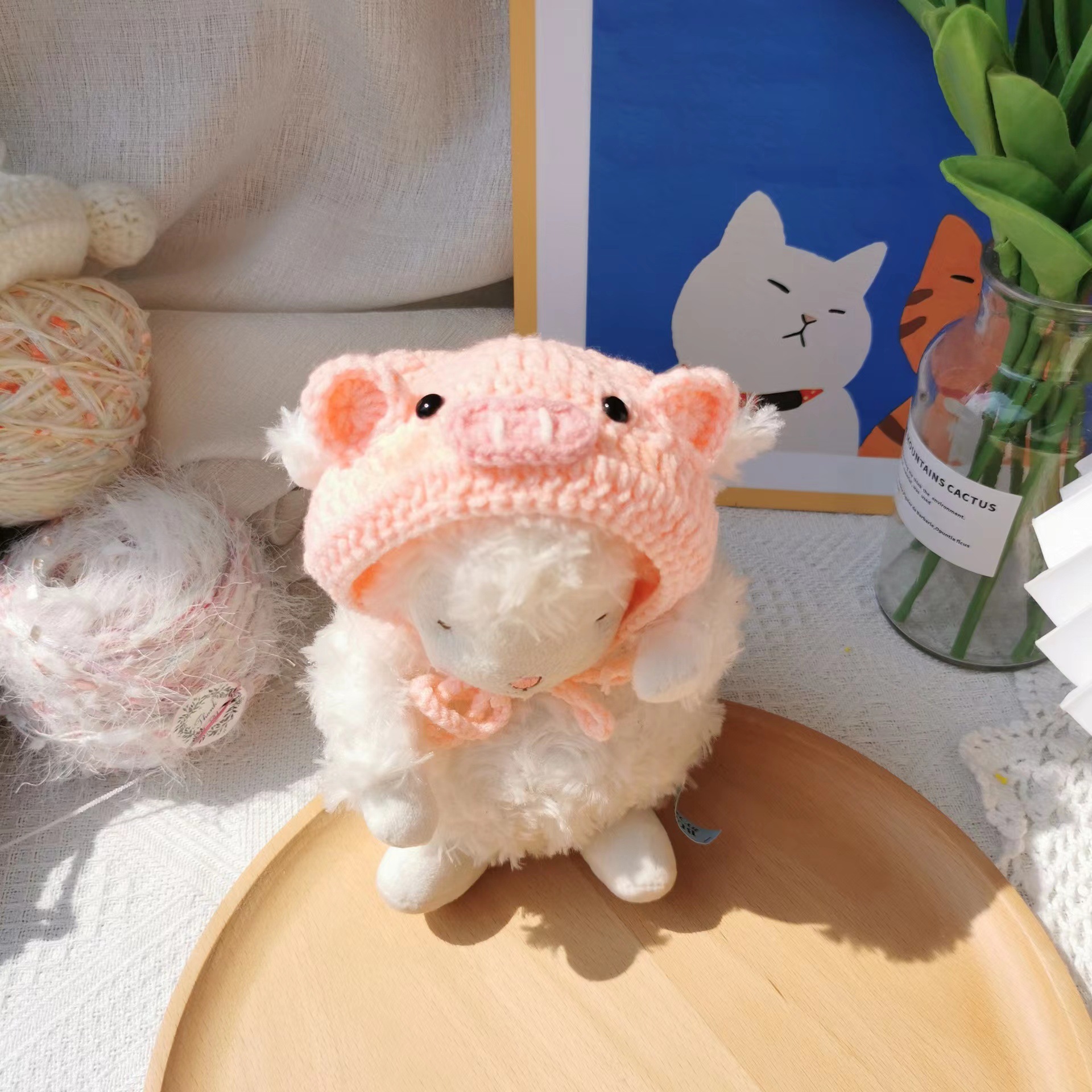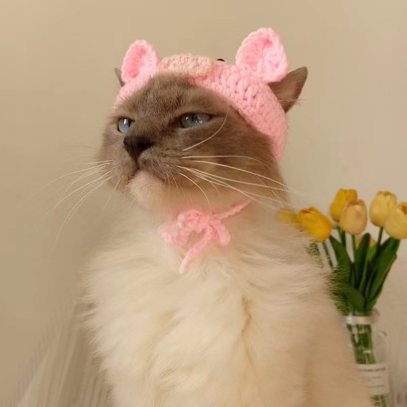 Frog Piggy Pet Crossdressing Funny Hat Cross-Border Hot Selling Handmade Knitted Kitten Hat Cat Dog Ornament 中文版