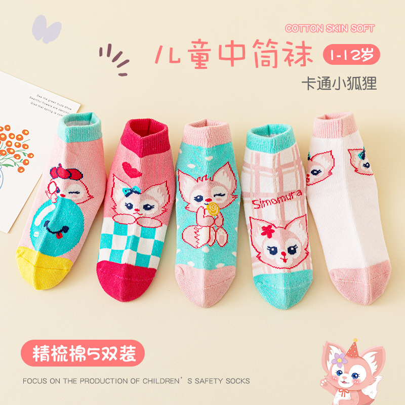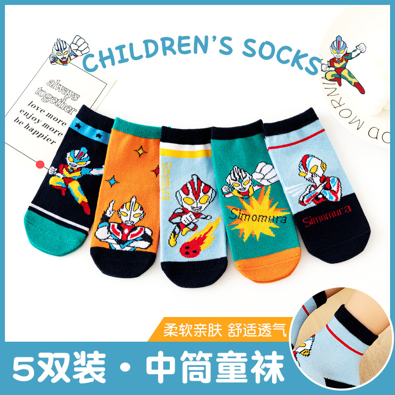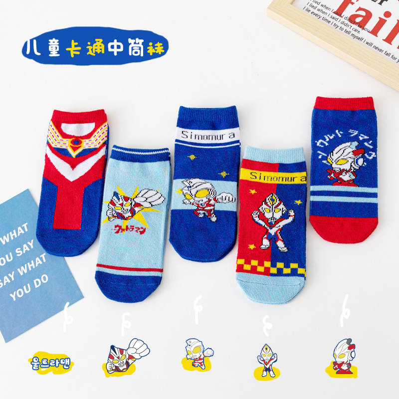 [Five Pairs] Children's Tube Socks Fashion Cartoon Boy Girls Trendy Mid-Calf Length Socks Ultraman Socks Wholesale