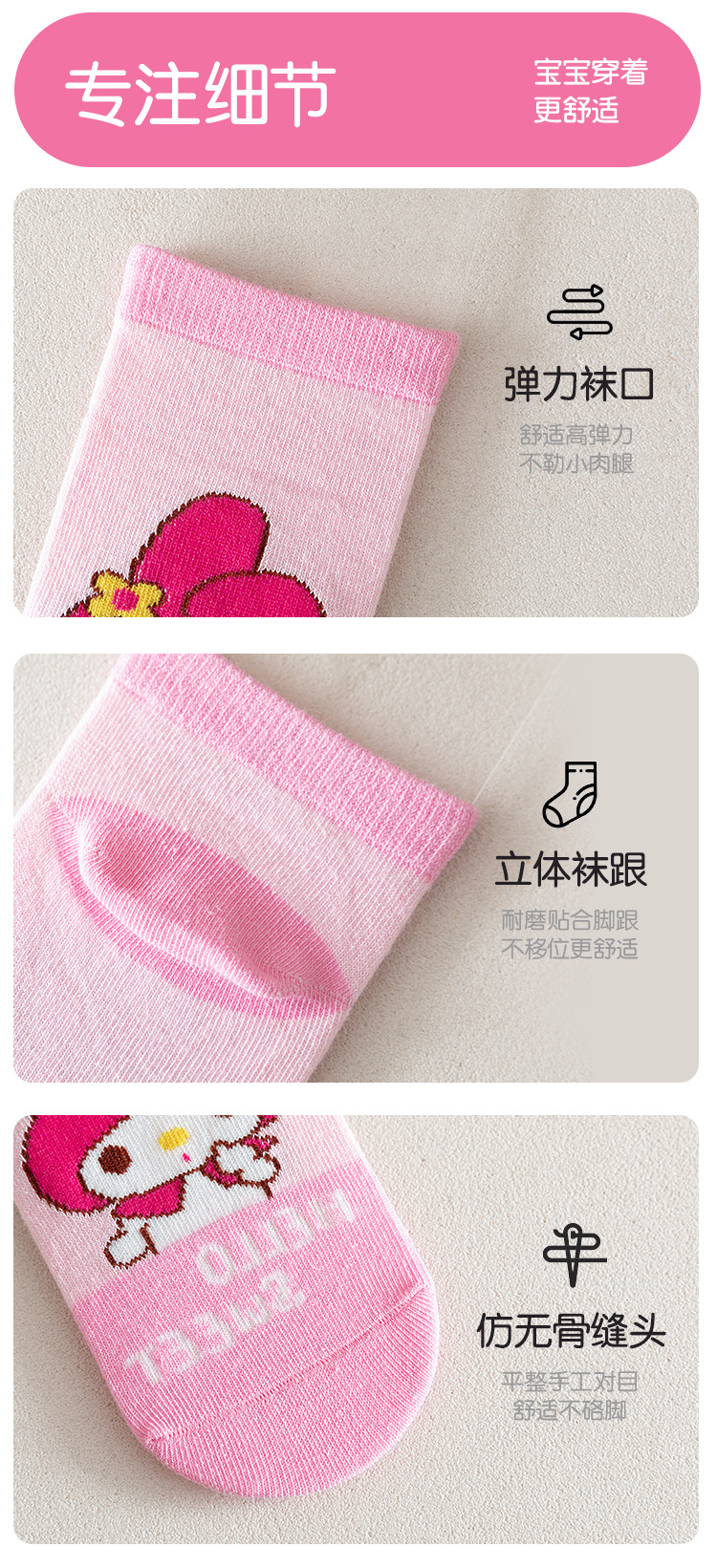 24 Spring New Children's Socks Cute Cartoon My Melody Girls' Socks Sweet Children Cotton Socks Factory Delivery