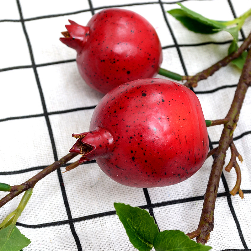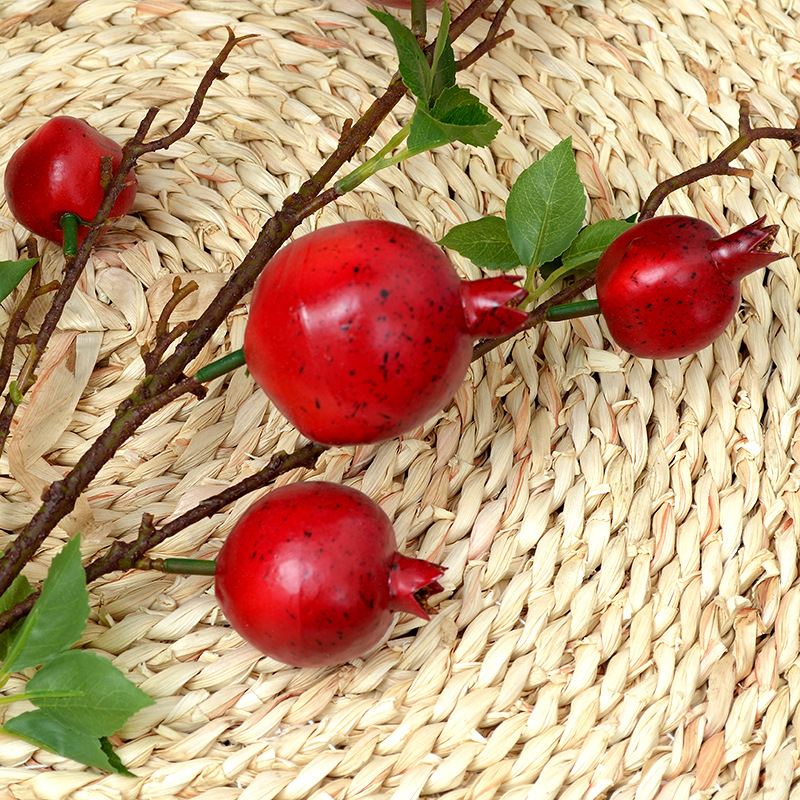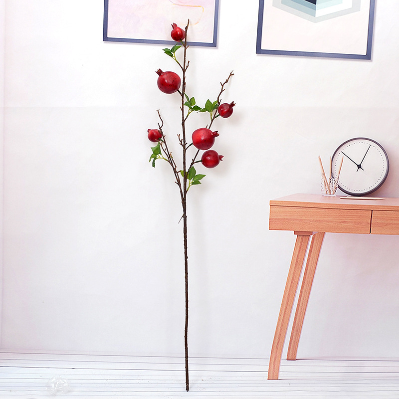 artificial flower artificial plant Fruit Lamination Feel Fake Flower Fruit Decoration Chinese Living Room 6 Heads Single Stem Pomegranate Branches