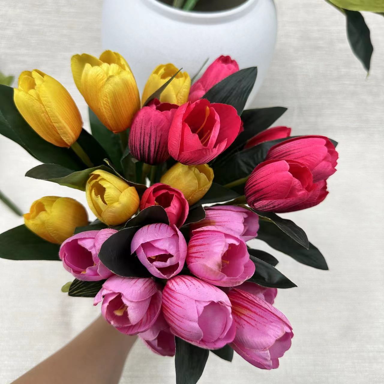 artificial flower artificial plant Factory Wholesale High-End Living Room and Hotel Decorative Artificial Flower 9 Small Tulip Bouquet Fake Flower