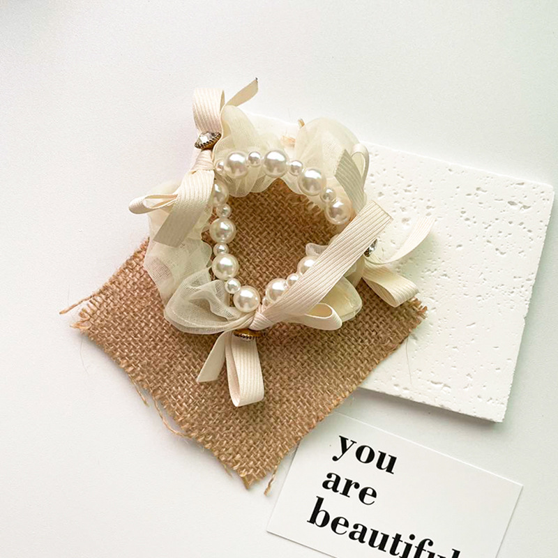 mesh pearl bow-beige