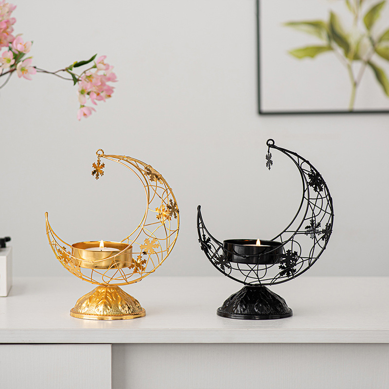 light luxury metal moon candlestick home desktop decoration candle cup holiday wedding ceremony home decoration 中文版