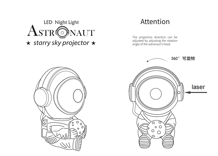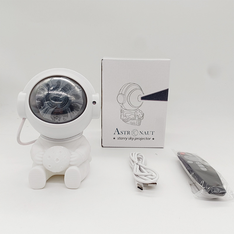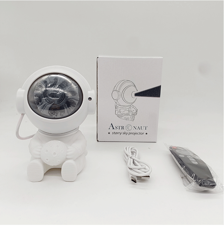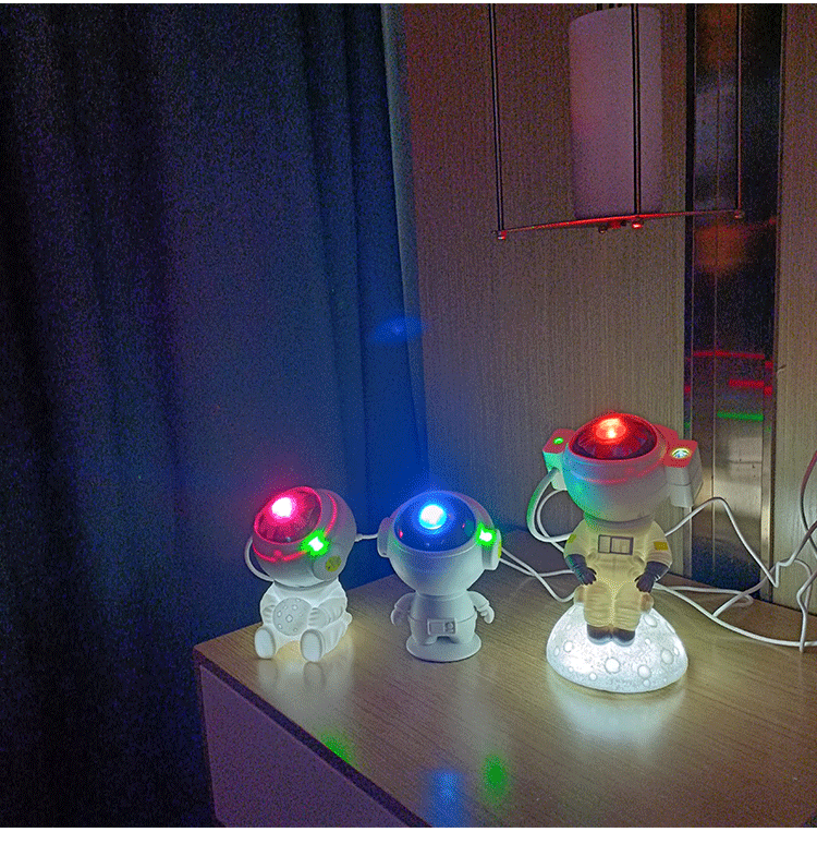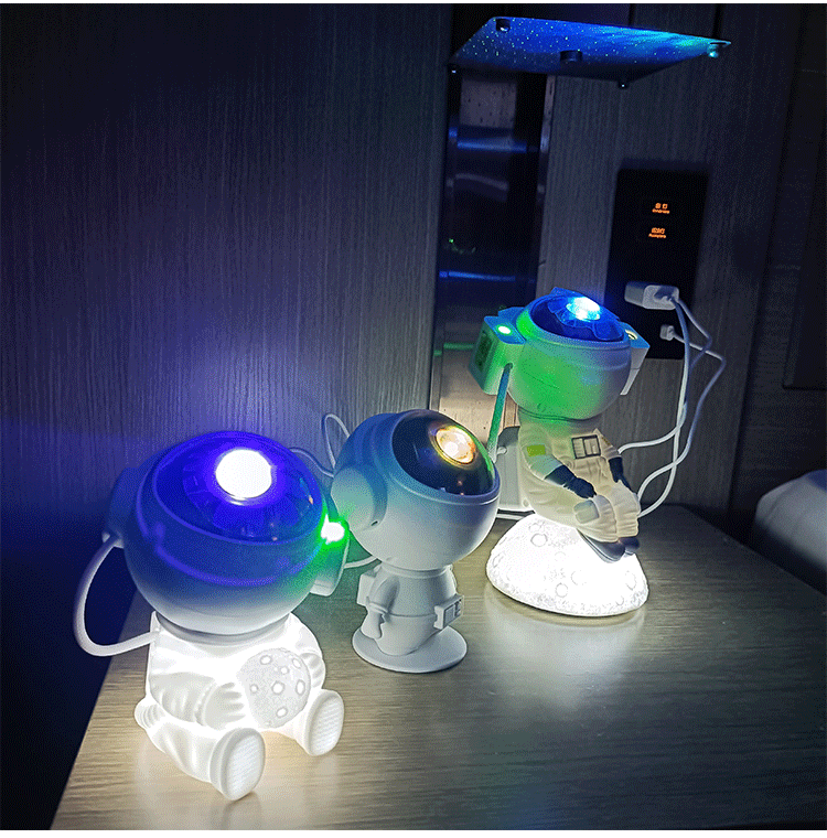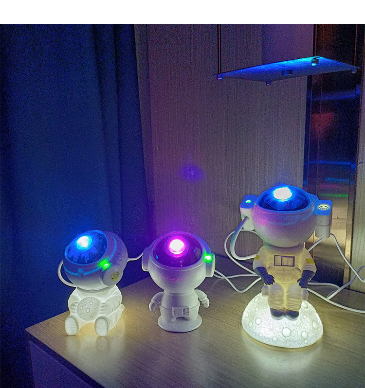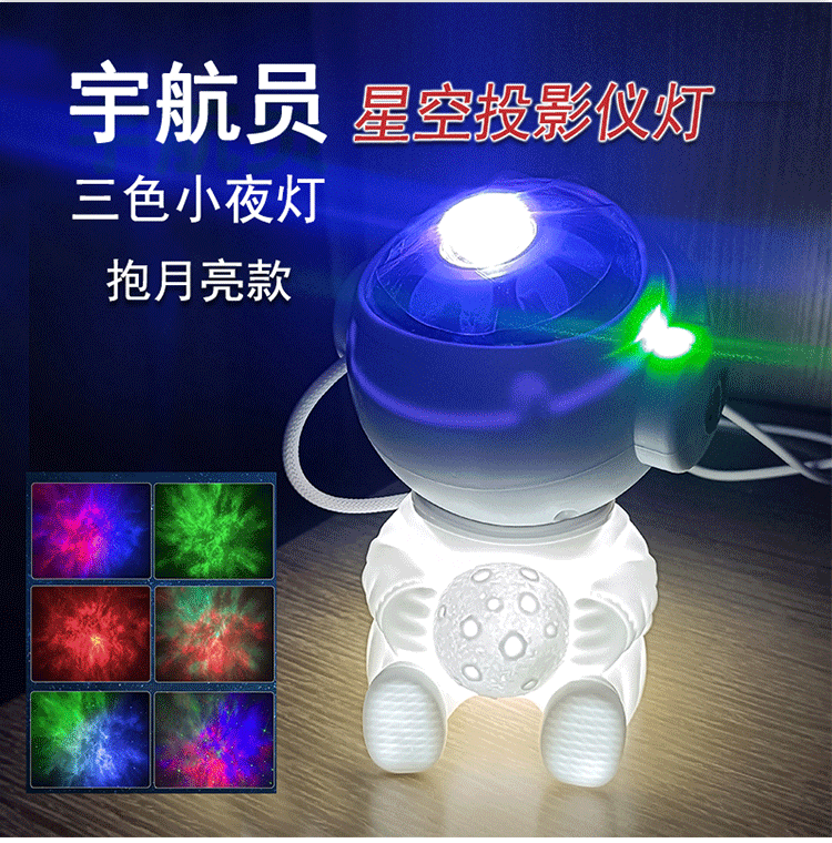 moon-holding astronaut star light colorful rotating dream nebula projector light spaceman tricolor small night lamp 中文版