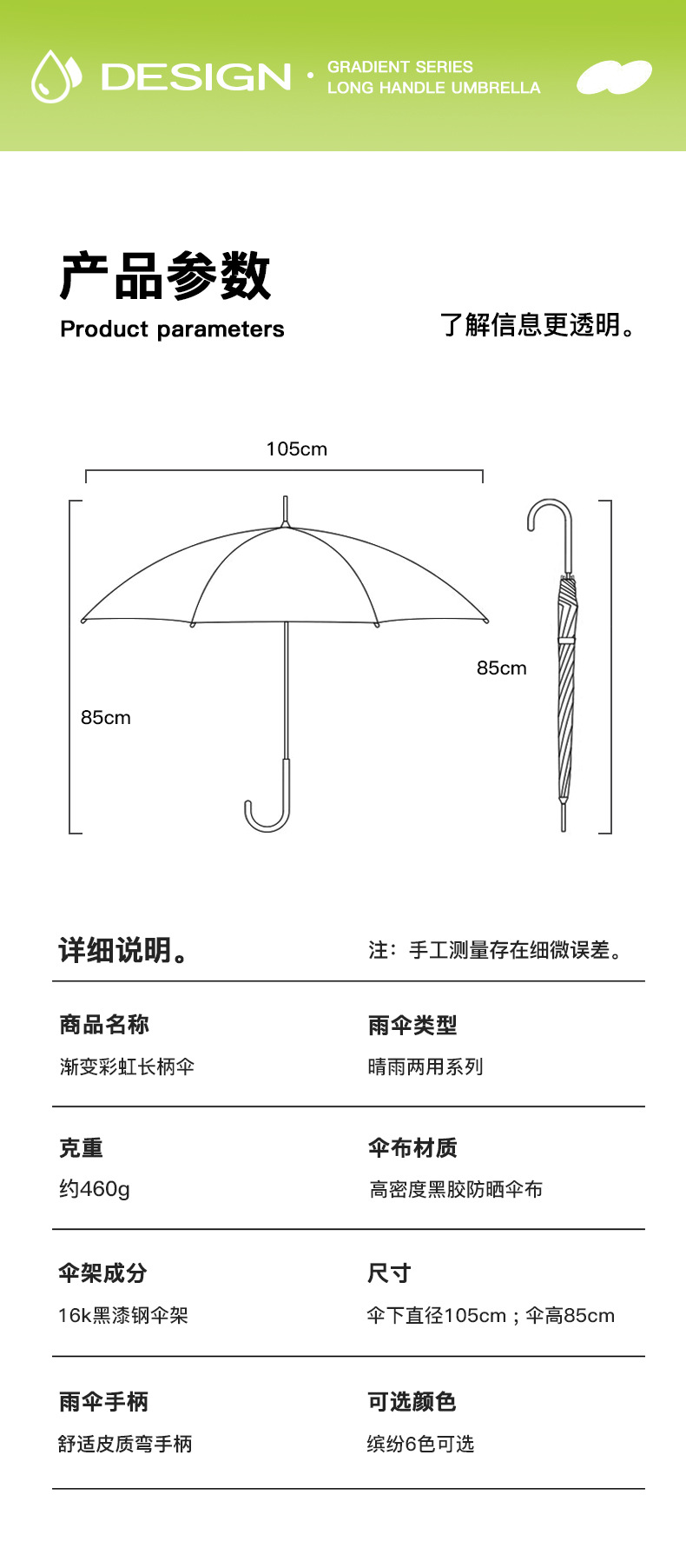 About the swaying of the umbrella handle: To ensure that the umbrella can be opened and closed easily, there is a gap between the umbrella frame and the umbrella handle, so slight swaying is normal and does not affect the use and stability of the umbrella.