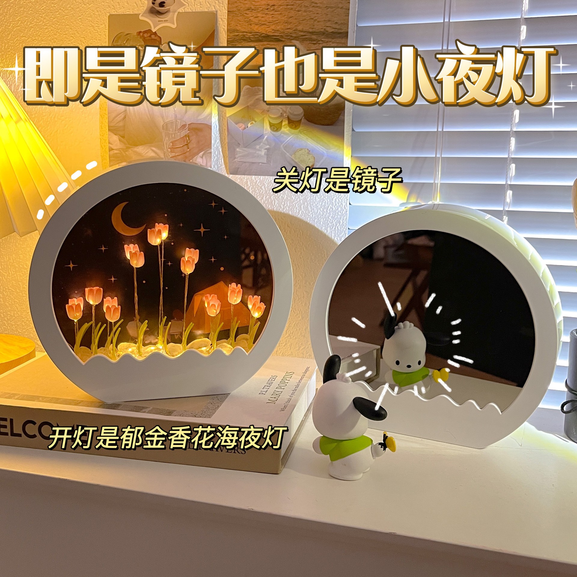 girlfriends' gift new girls birthday gifts tulip rose small night lamp diy handmade mirror flower sea bouquet 中文版