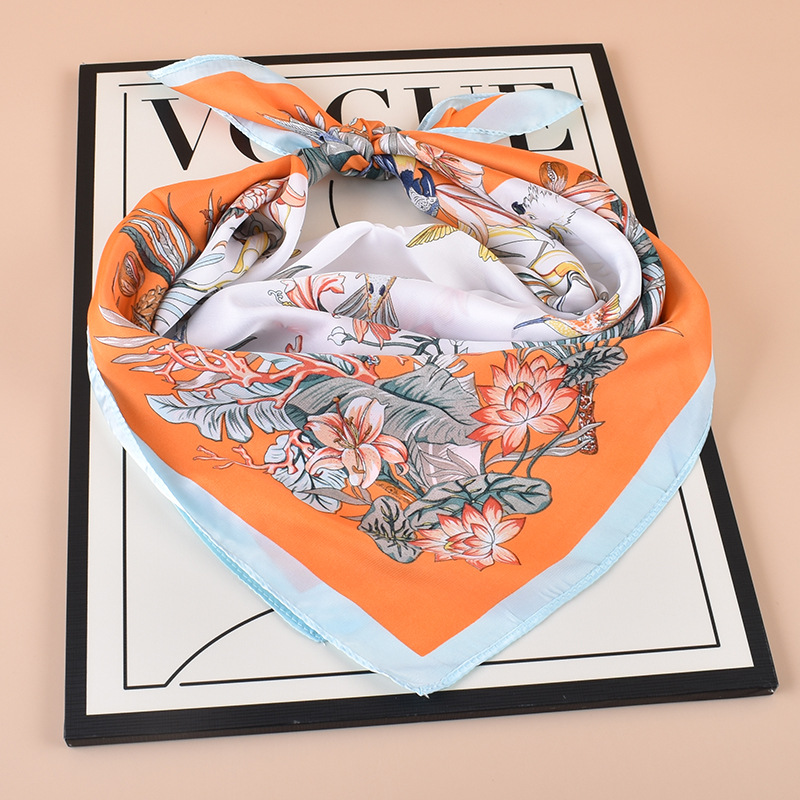 2024 new elegant socialite style plant flower 70 small silk scarf imitation silk square scarf headcloth sunscreen shawl batch