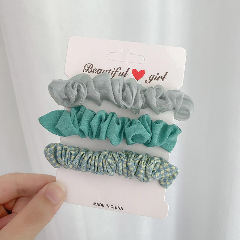 plaid small intestine hair band 3 sets rubber band candy color tie hair rope net red hair ring korean style sweet hair band 中文版