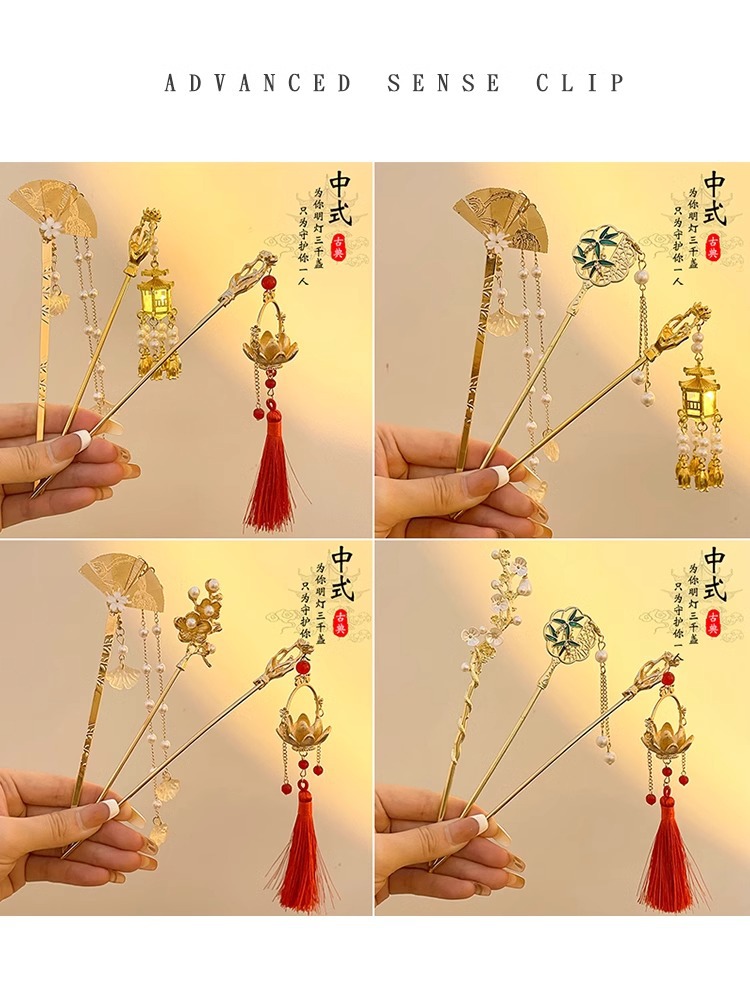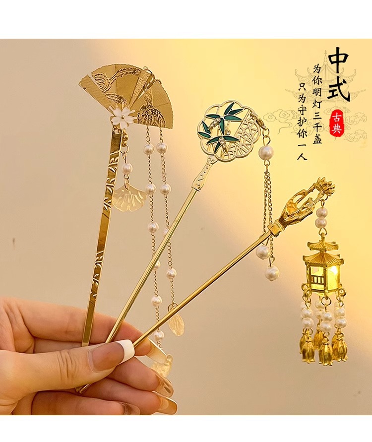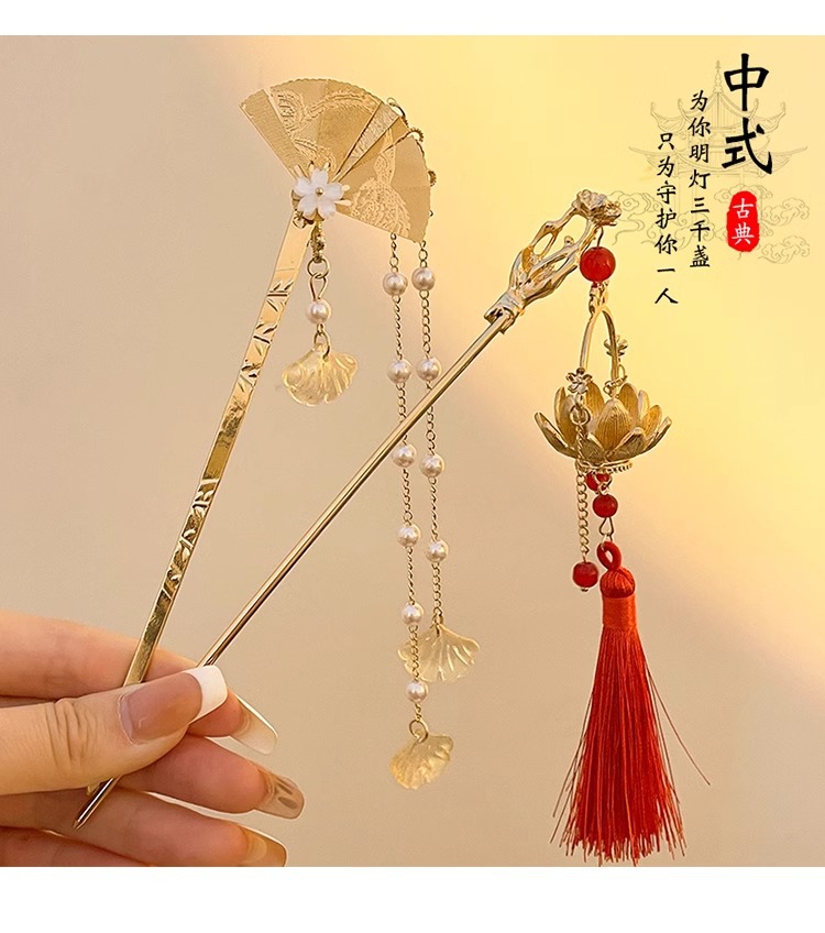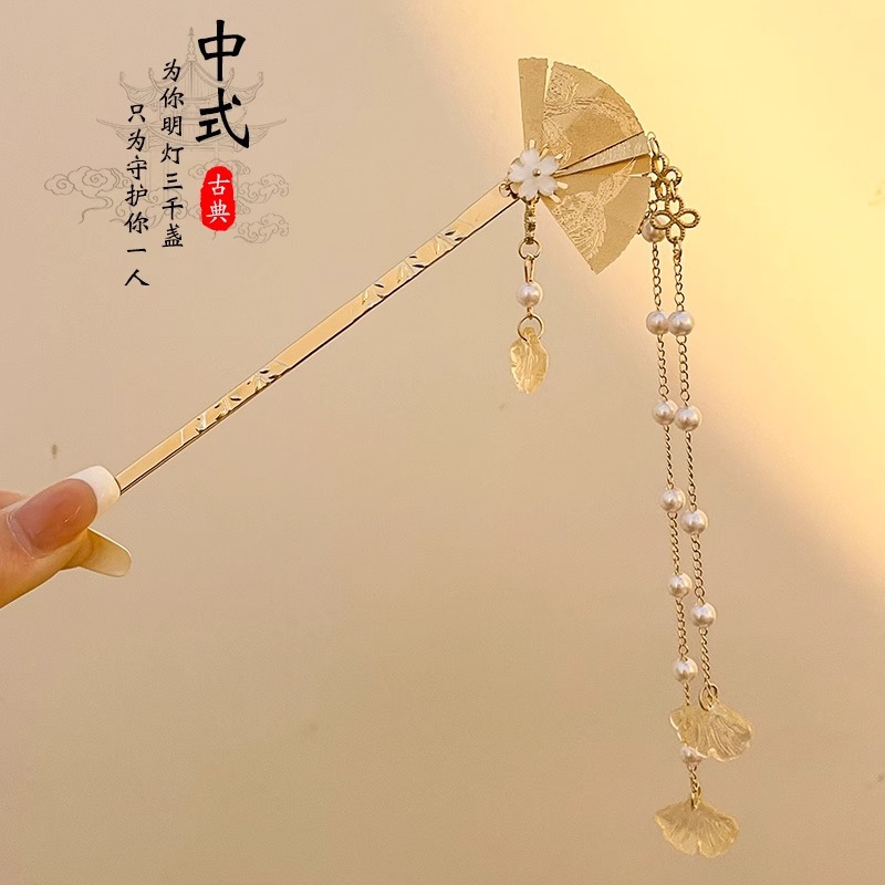 folding fan tassel hairpin length about 16.2cm