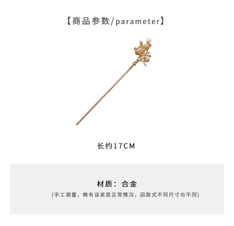gold metal pearl flower hairpin-about 18cm