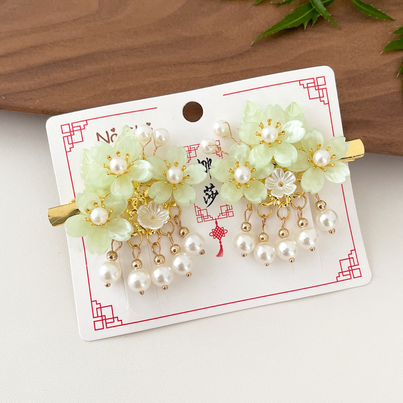 19# green double layer flowers forehead lace a pair of hairclips
