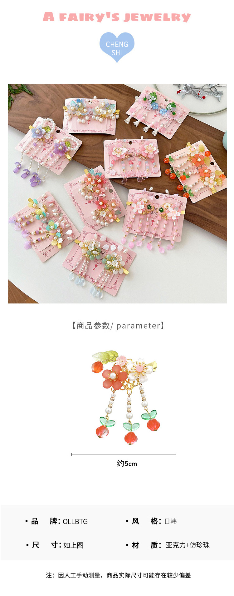 22# red flower forehead lace a pair of hairclips