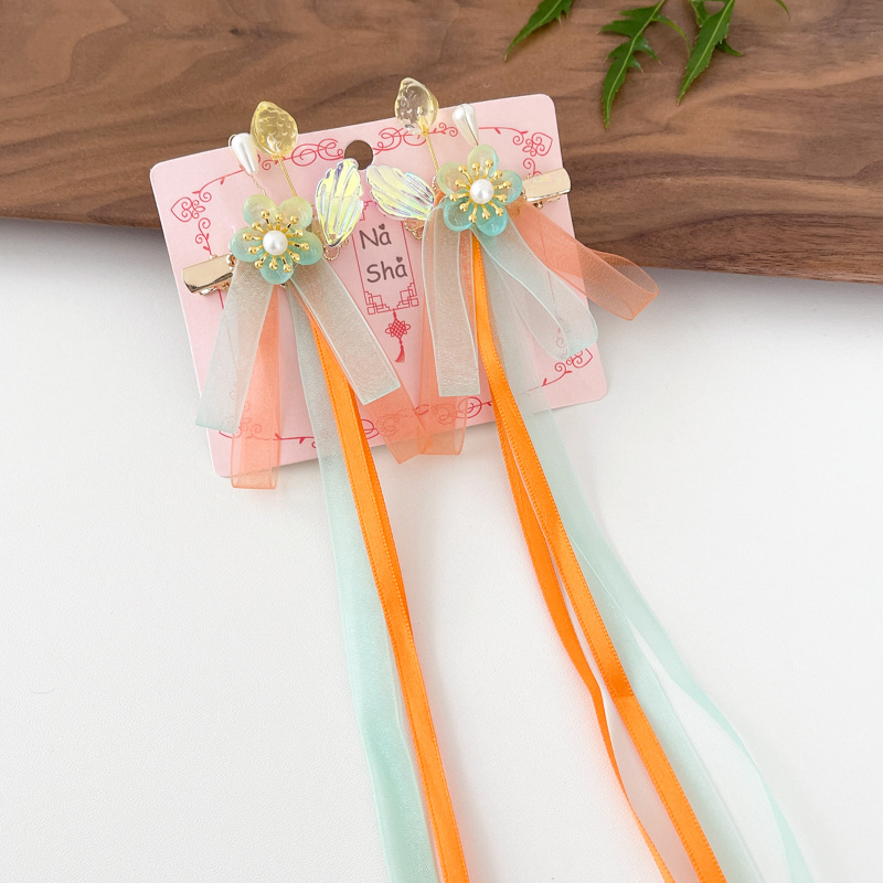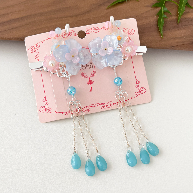9# blue flower tassel braided hair barrettes pairs