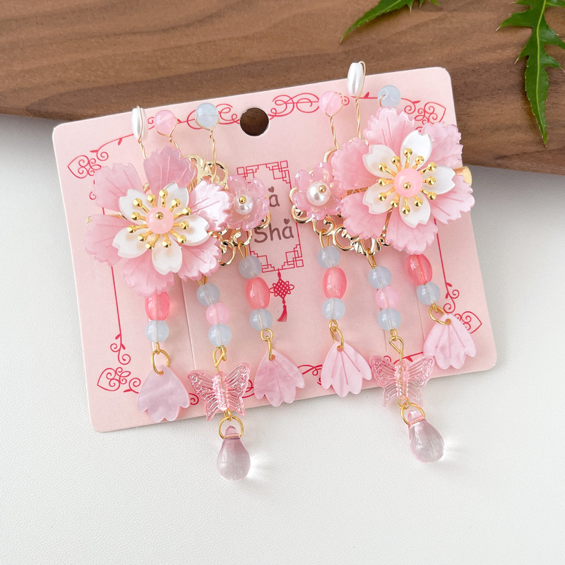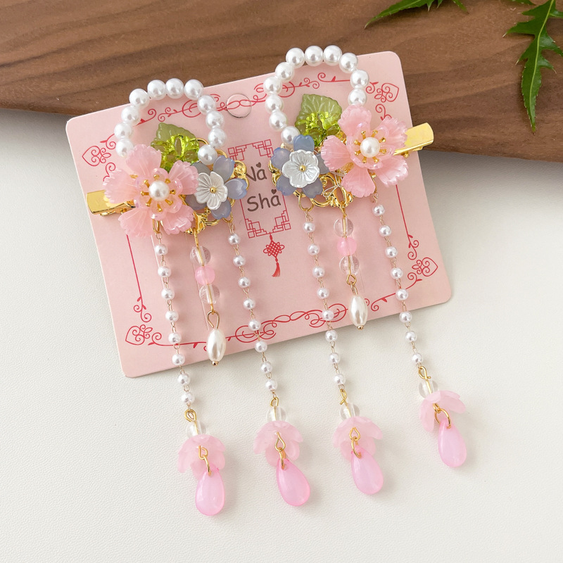 6# pink floral pearl tassel
