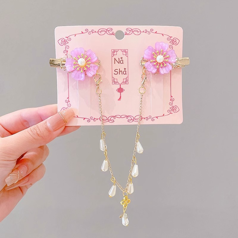 17# purple five petal flower forehead lace a pair of hairclips