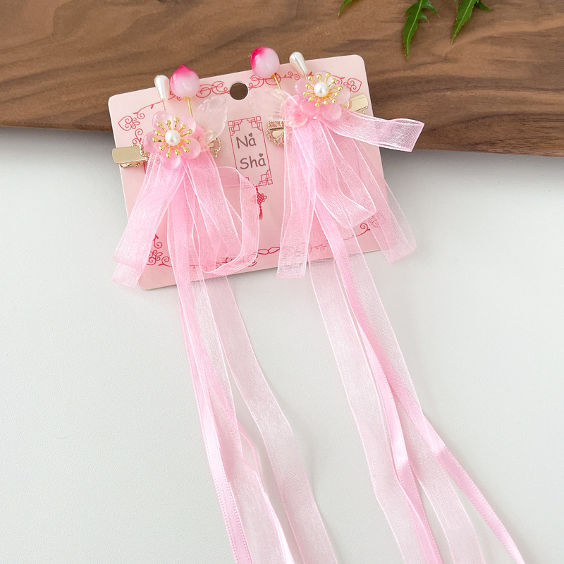 13# pink hibiscus flower forehead lace a pair of hairclips