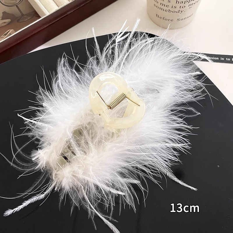 11cm-beige white feather grip
