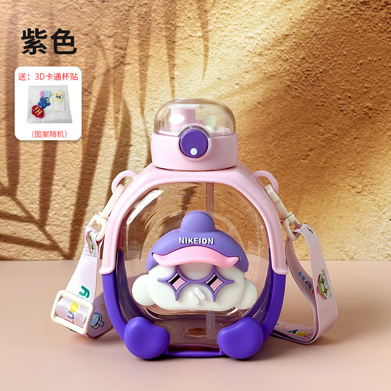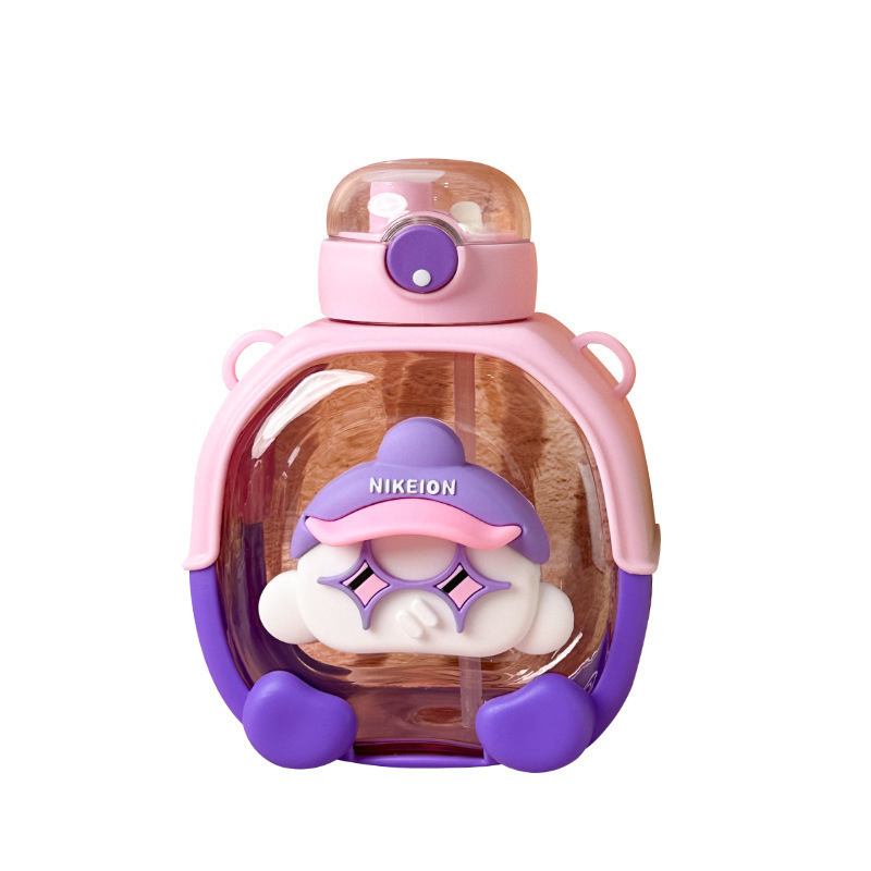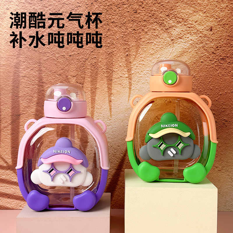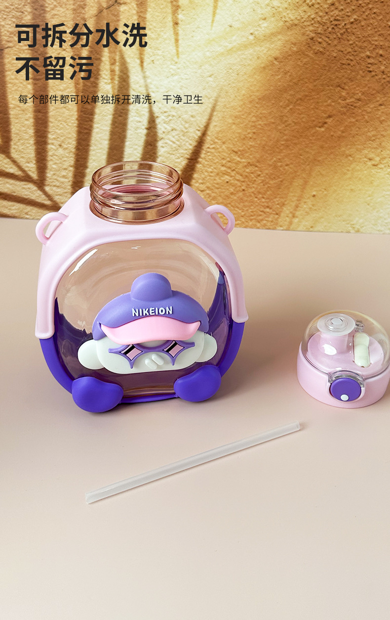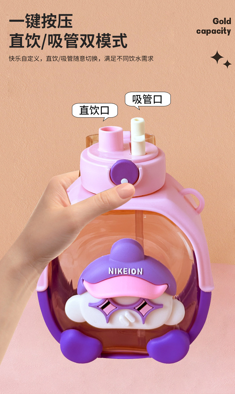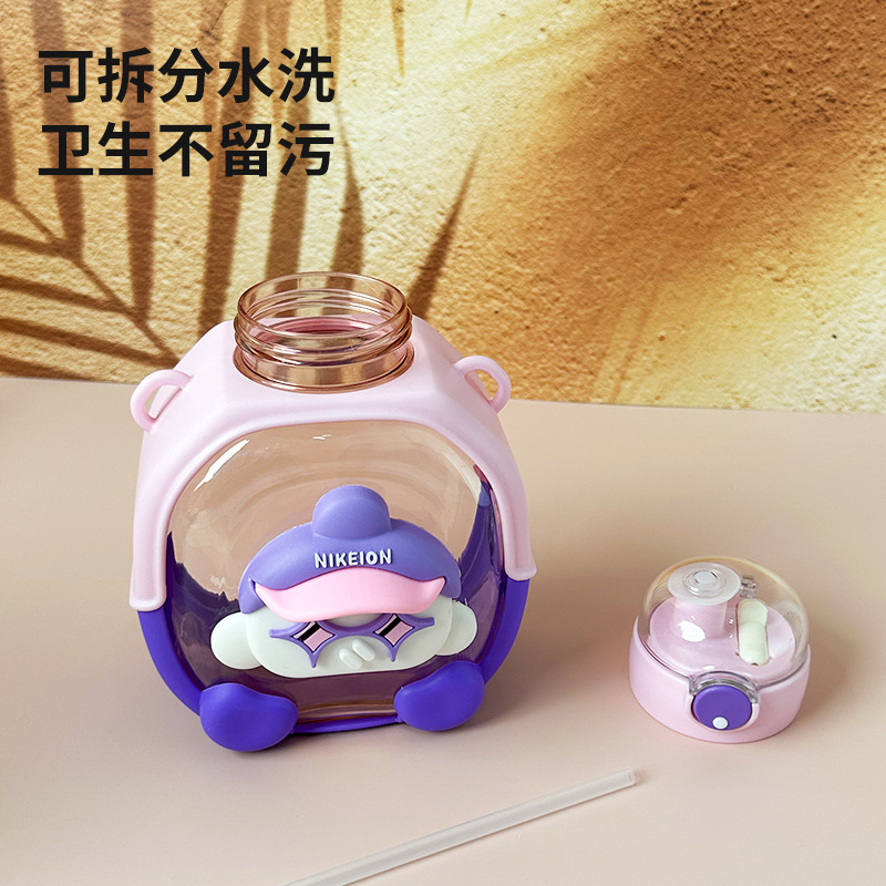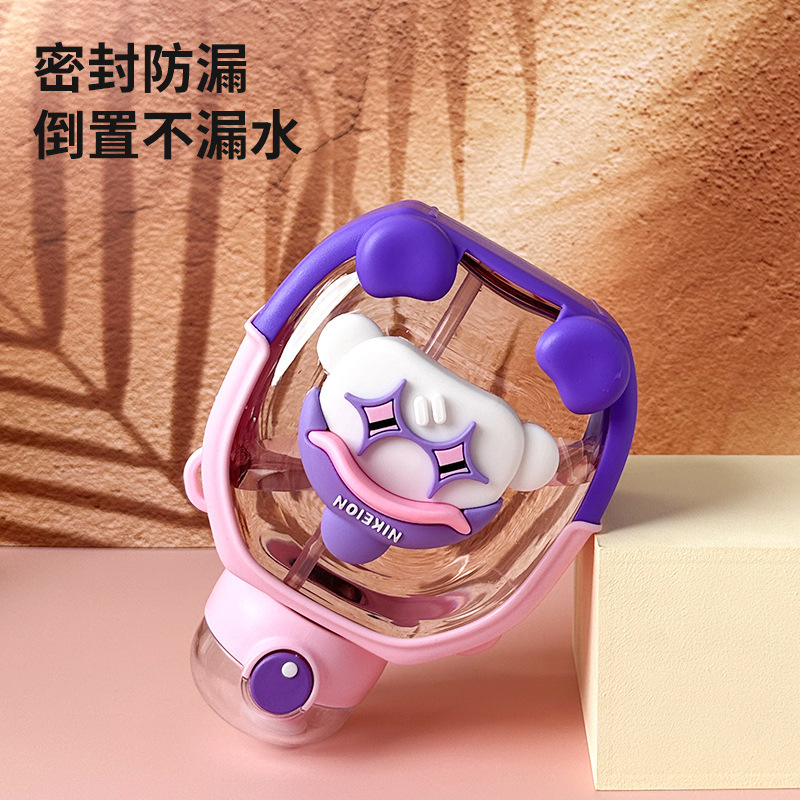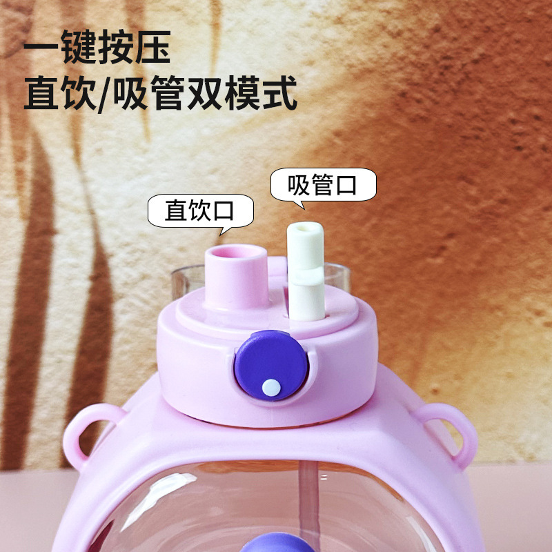 New Cute Cartoon Double Drink Cup with Straw Summer Good-looking Cup with Straw One-Click Bounce Cover High Temperature Resistant Portable Water Cup