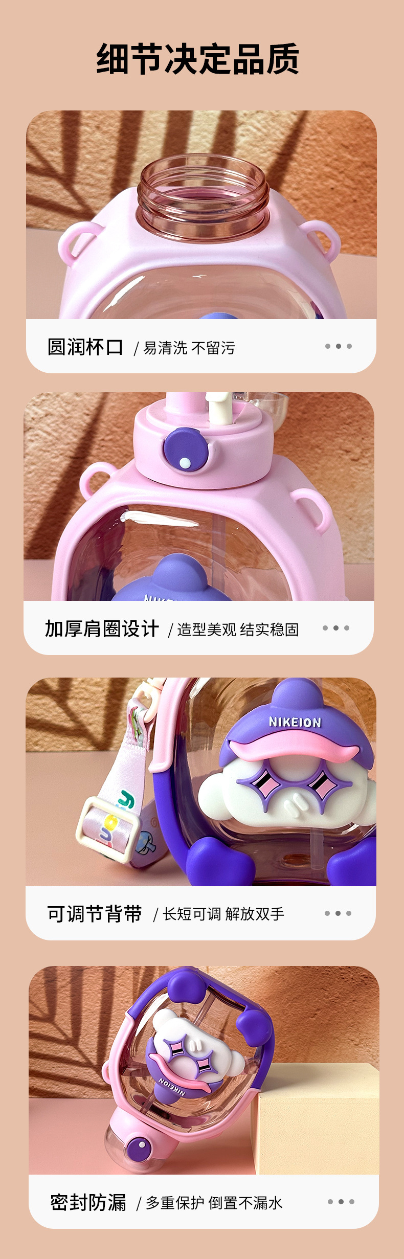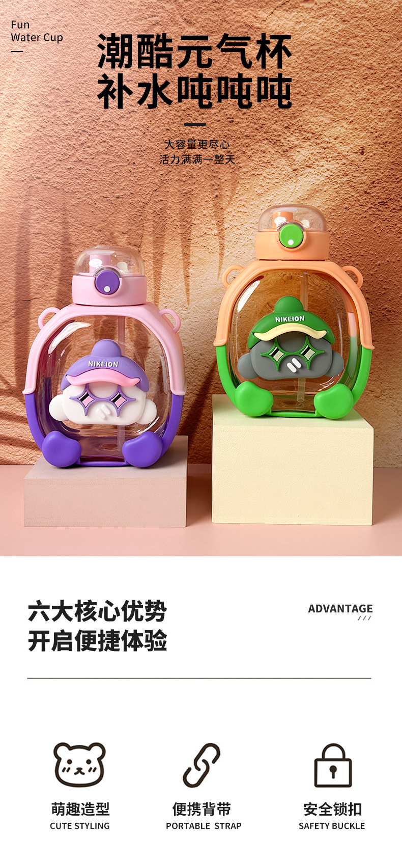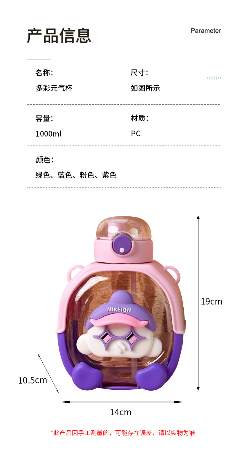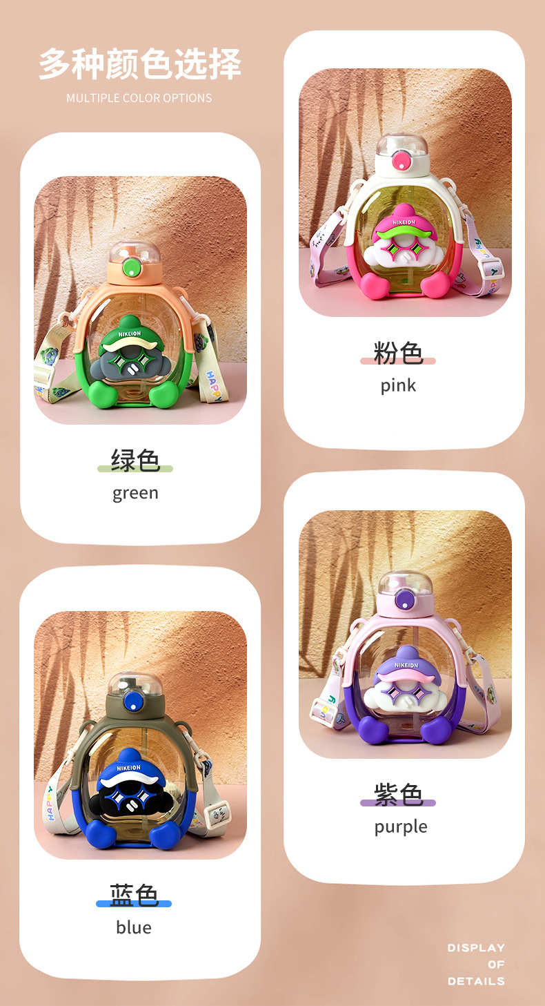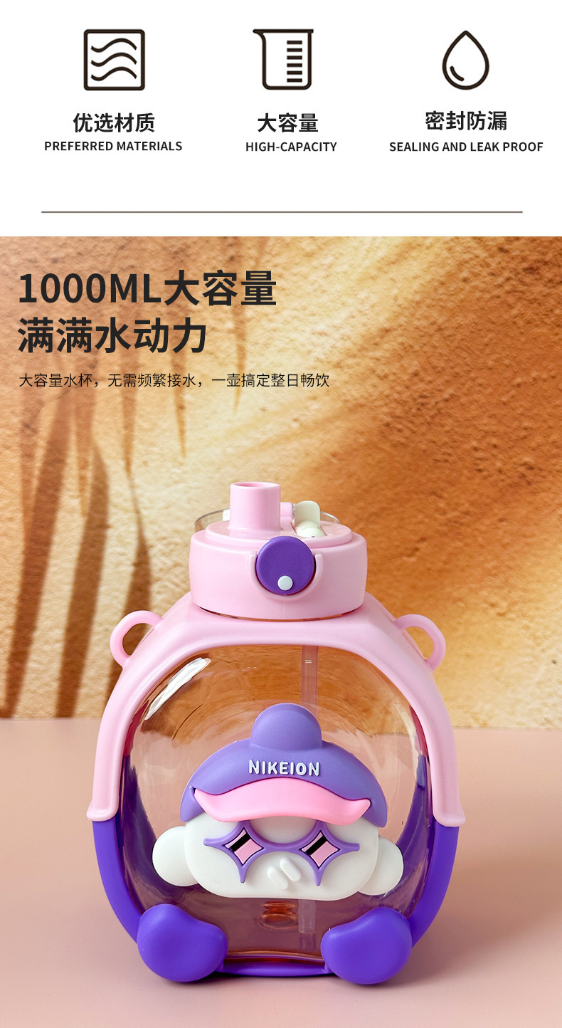 New Cute Cartoon Double Drink Cup with Straw Summer Good-looking Cup with Straw One-Click Bounce Cover High Temperature Resistant Portable Water Cup