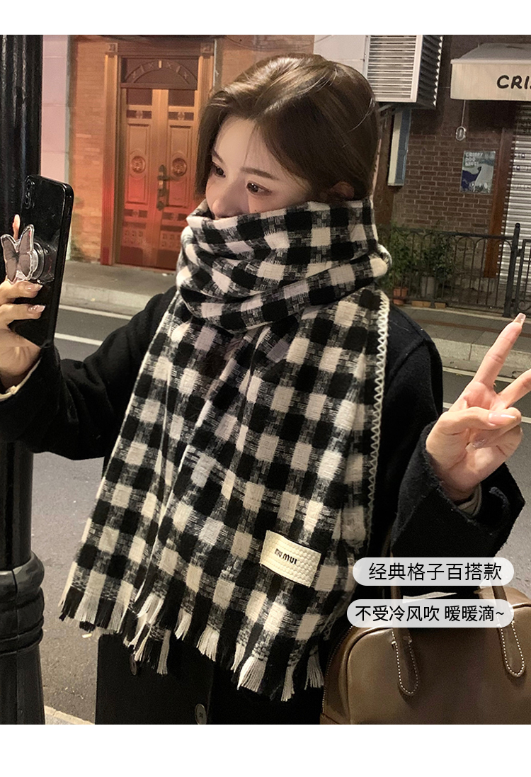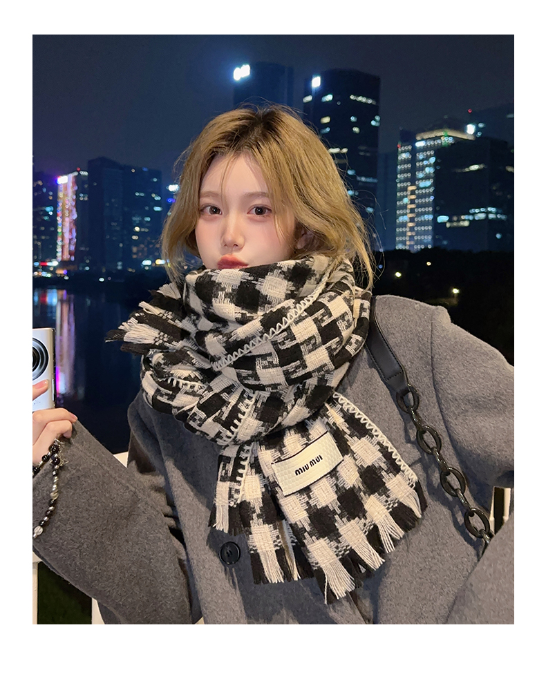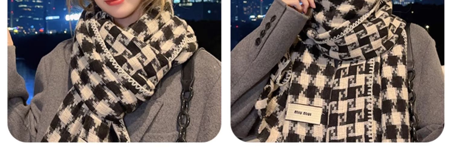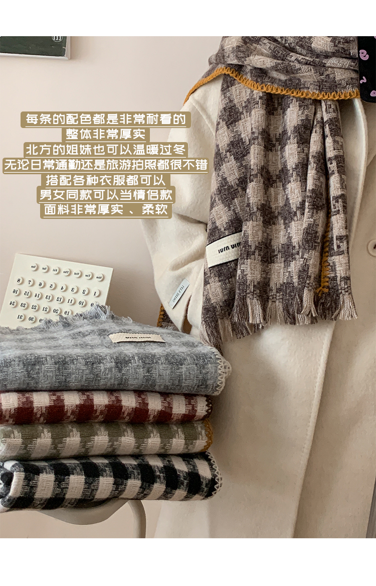 new houndstooth scarf women's winter korean style outer shawl dual-use scarf couple warm cashmere-like scarf fashion 中文版