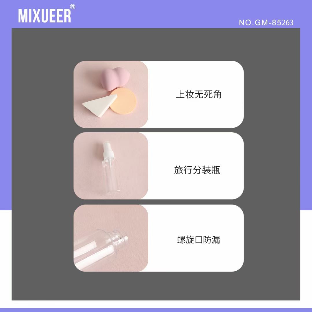 gm-85263-10 mixueer bagged puff + spray bottle suit mi xueer foreign trade factory direct sales wholesale 中文版
