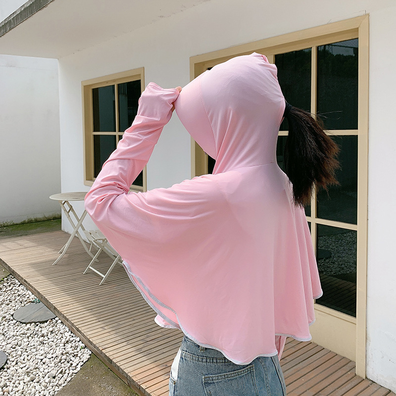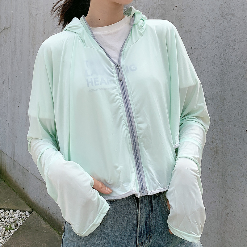 Summer Ice Silk Thin Sun Protection Clothing for Women 2023 New Electric Car Sun Protection Clothing Breathable Cardigan Hooded Sun Protection Shirt 中文版