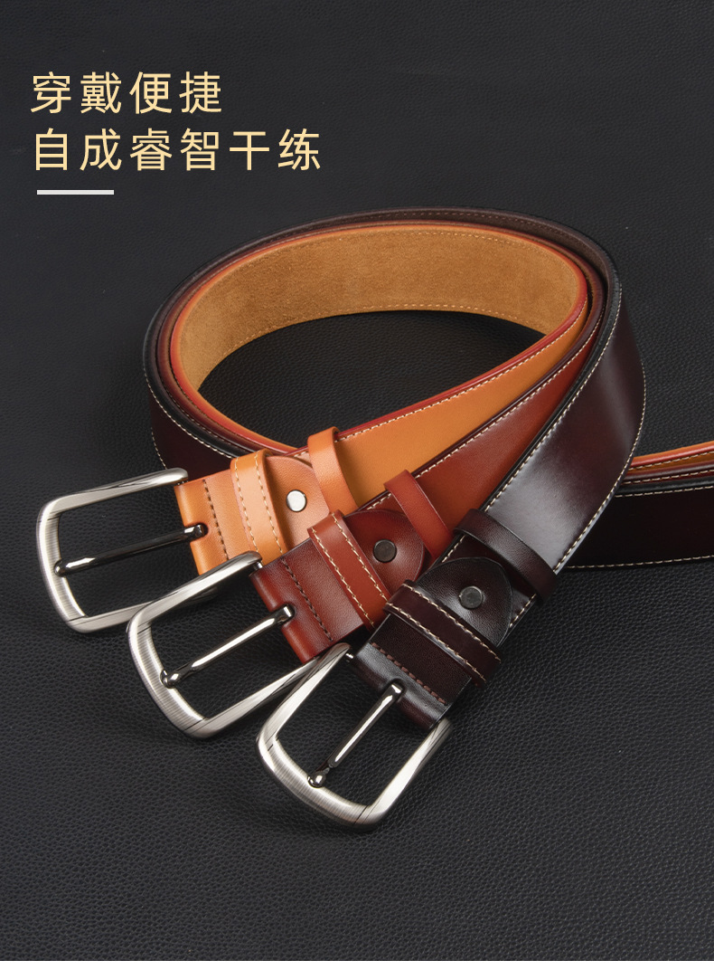 new belt men's leather pin buckle men's cowhide casual retro pant belt factory wholesale delivery foreign trade cross-border 中文版
