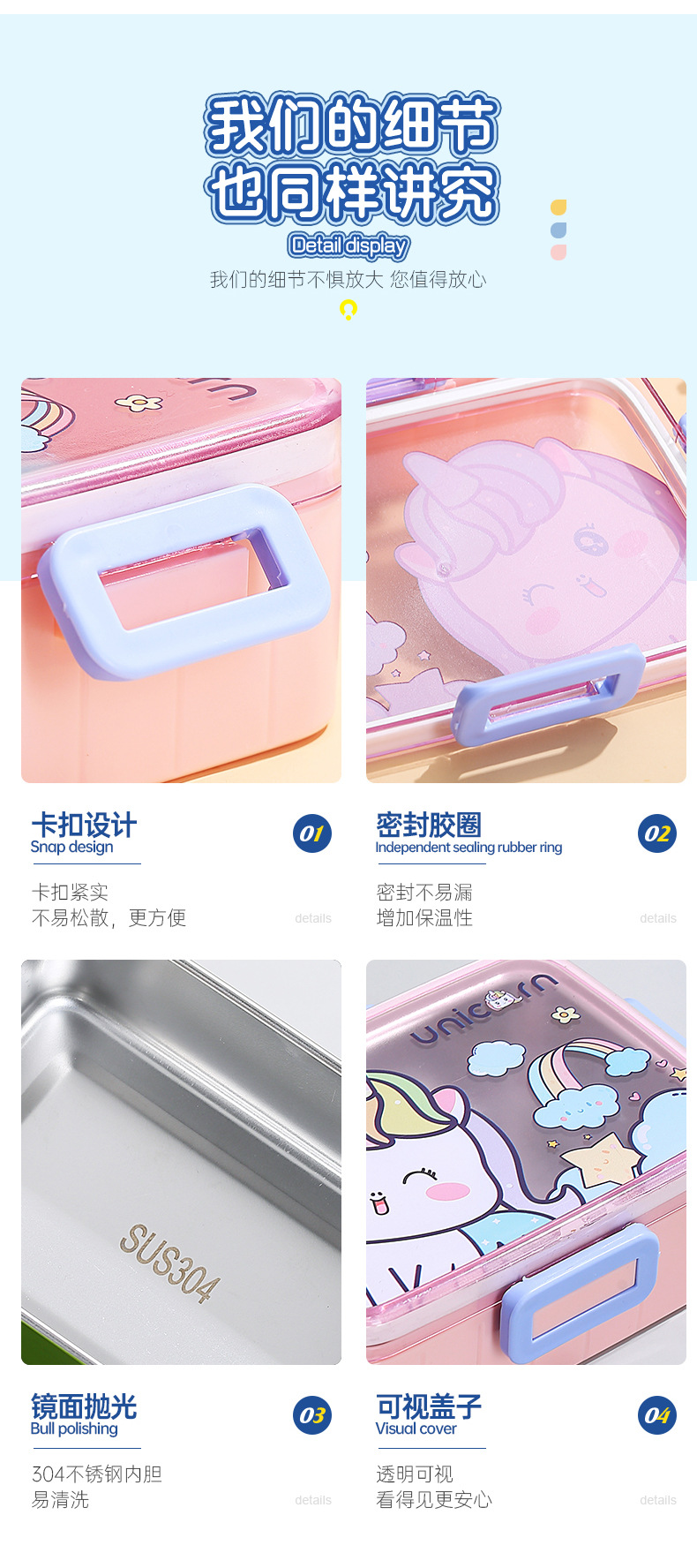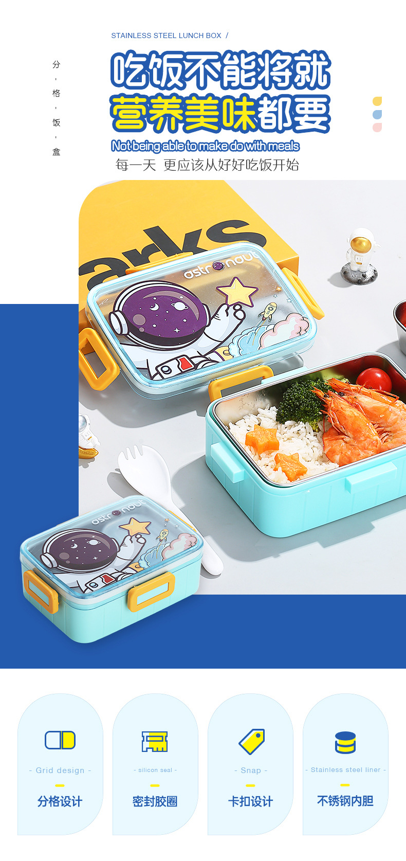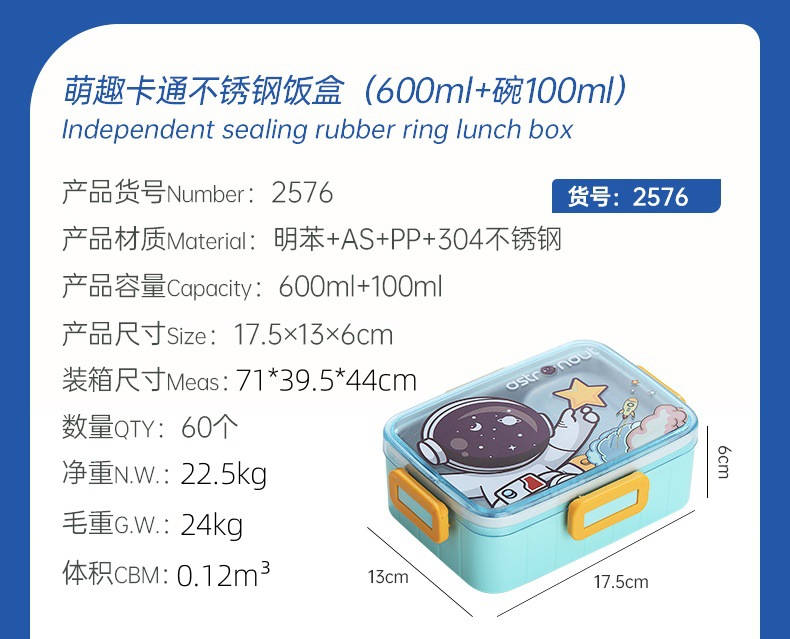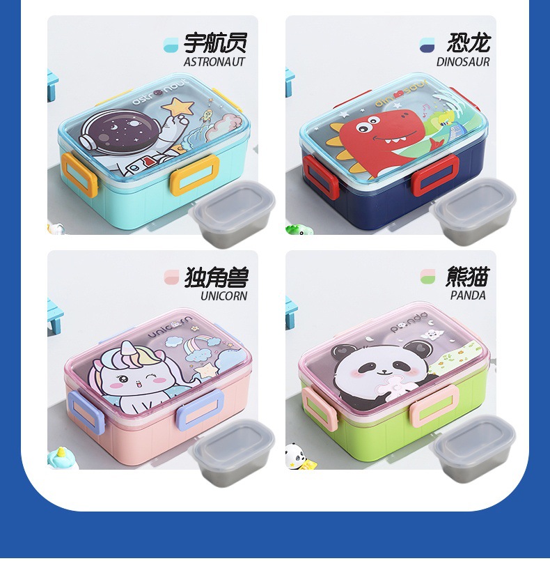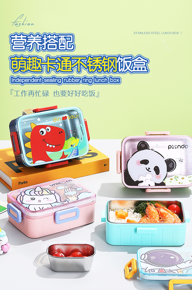 cute cartoon 304 stainless steel lunch box single grid with soup bowl sealed lunch box student portable bento lunch box