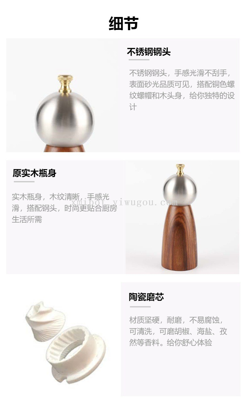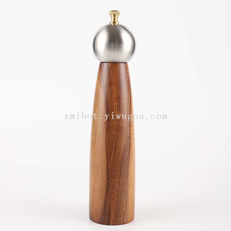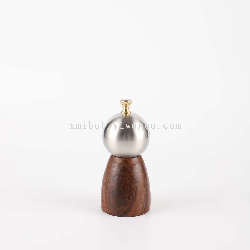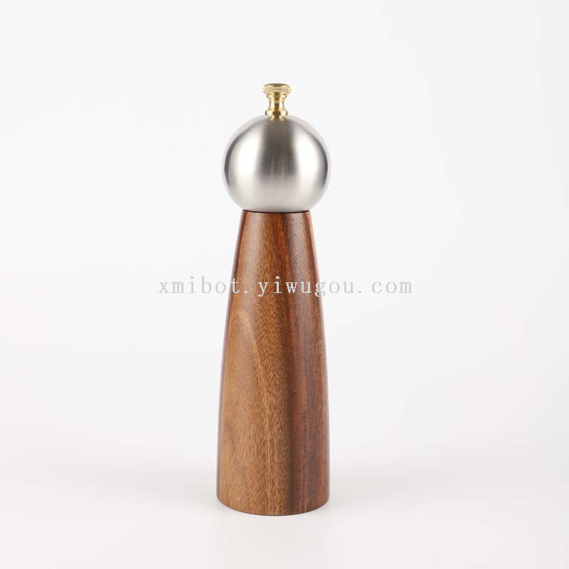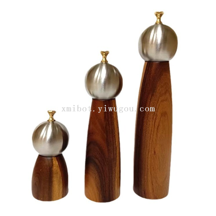 Stainless Steel Head Wood Bottle Body Pepper Grinder Manual Pepper Mill Golden Cap Spice Jar 中文版